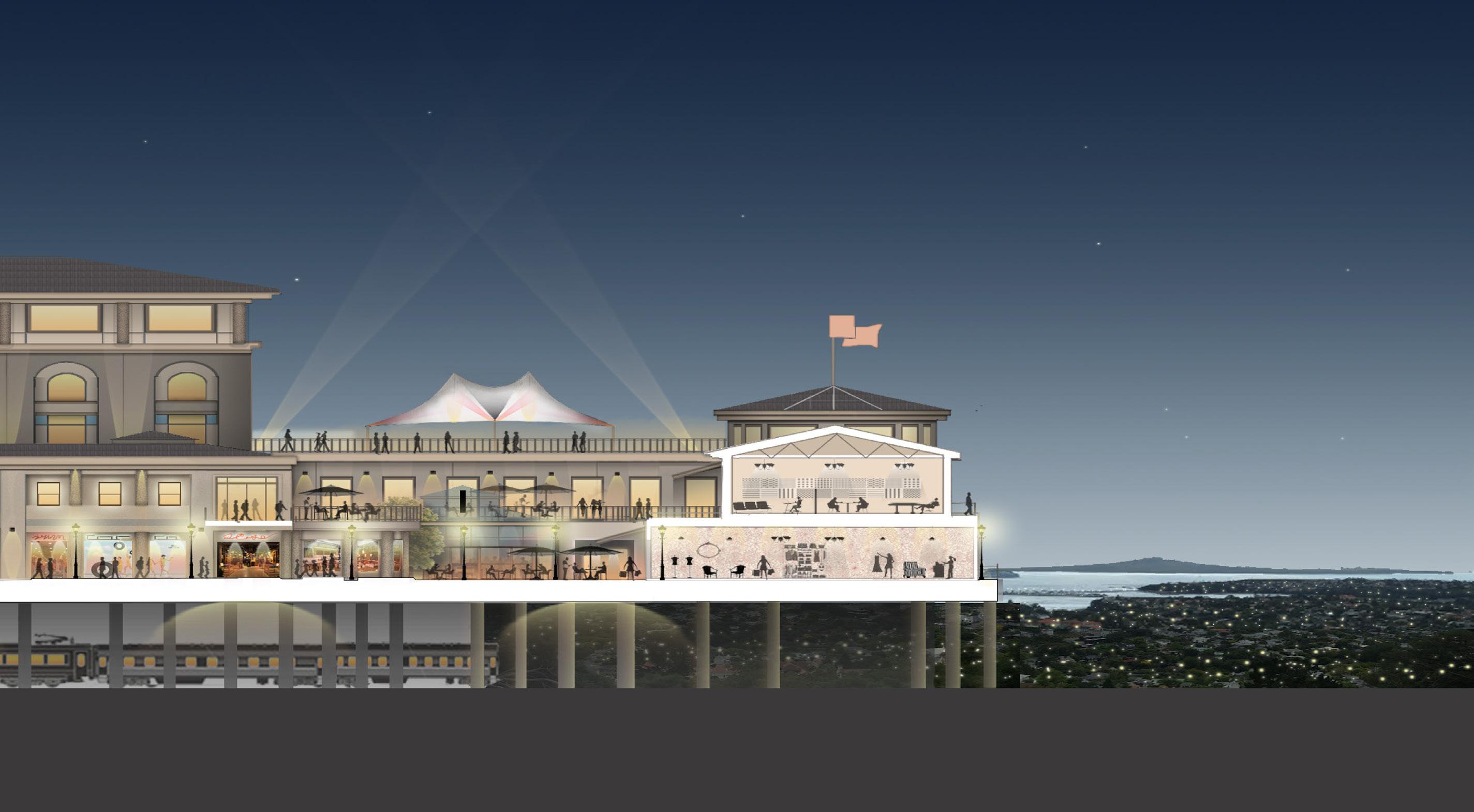 Ito provide ideas for a new transport interchange at the bottom of Queen Street between the main wharfs on the Waitemata harbour edge and the city business centre.