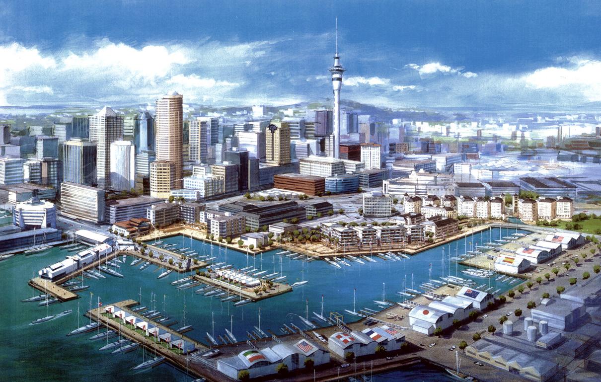 The Viaduct Harbour is a tidal manmade inlet created off Auckland’s Waitemata harbour. The reclaimed lands surrounding the Viaduct have traditionally supported robust industrial warehouses for boat manufacturing, fishing, timber and raw product storage, their activities requiring little connection to the main port and Aucklandís City Centre. New Zealand Yachting hit the world stage in 1995 with New Zealand’s winning the Americas Cup, creating new demands on this rough area, which resulted in it being transformed into a foreshore playground and promenade for locals and overseas visitors. Businesses associated with the new water activities and New Zealandís high technology industries which had made possible the winning of the cup wanted to bring