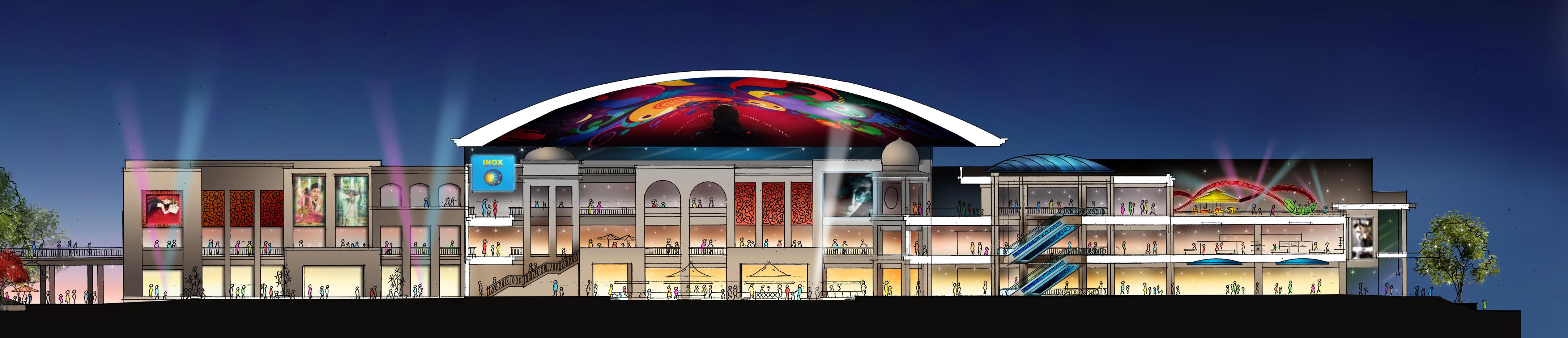 Walkers have designed buildings in India since 2000, one of our first commissions was to create a new image and branding for an emerging new cinema multiplex chain INOX. The intention was once we had created a brand type and had designed several new cinema complexes, then local India designers and architects would use our concepts and adapt it to other multiplex sites without needing our input. This ideology has worked well and we have good relationships and communication with the local designers utilising our initial concept.