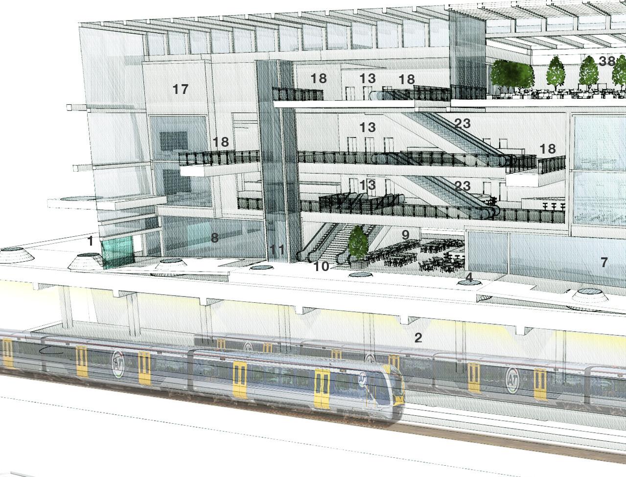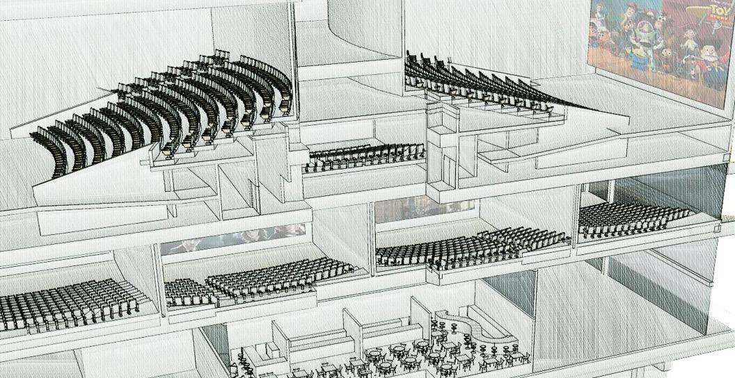 Walkers have a long history of designing buildings of high public attendance. Cinemas are one such type of building that demands careful design to help control the pedestrian movement to ensure efficiency of the space. This building which is planned to be built in 2020, not only is in public thoroughfare but is on top of existing rail infrastructure. The building houses a variety of cinemas, retail restaurants and outdoor and rooftop public facilities.