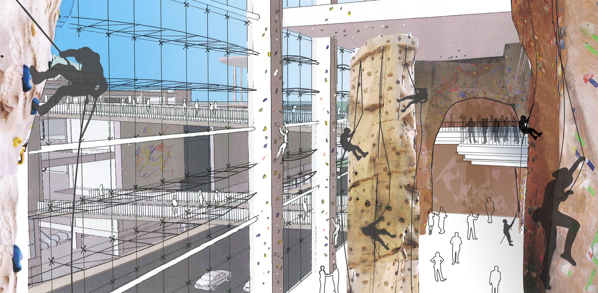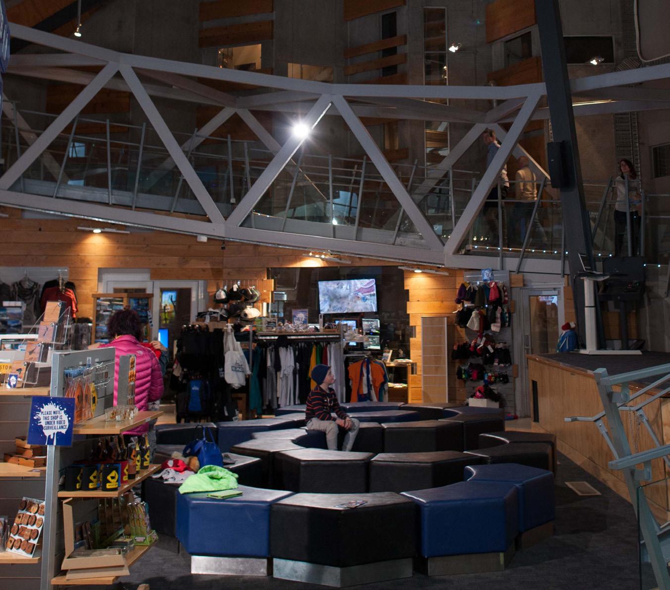 While successful for those jumping it was not for their families and friends who would not jump but wanted to come to share in the experience. A large domed retail cocoon dominated the steel and raw pre cast concrete interior and was an enclosure to a ‘rocking’ floor experience which was not popular.