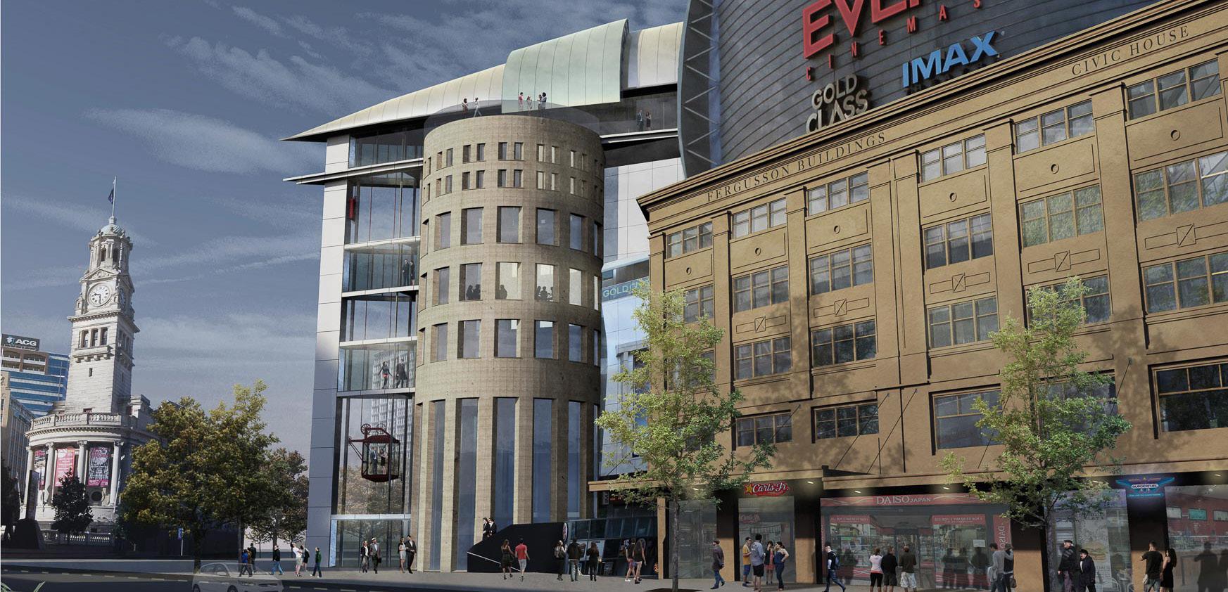 A challenging development as we were building over Auckland’s major civic carpark, two existing inner city streets, and having to build around and encompass three historic buildings. This new building had to be exciting, memorable and exude