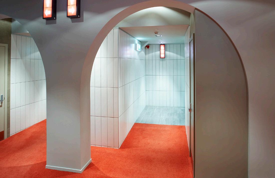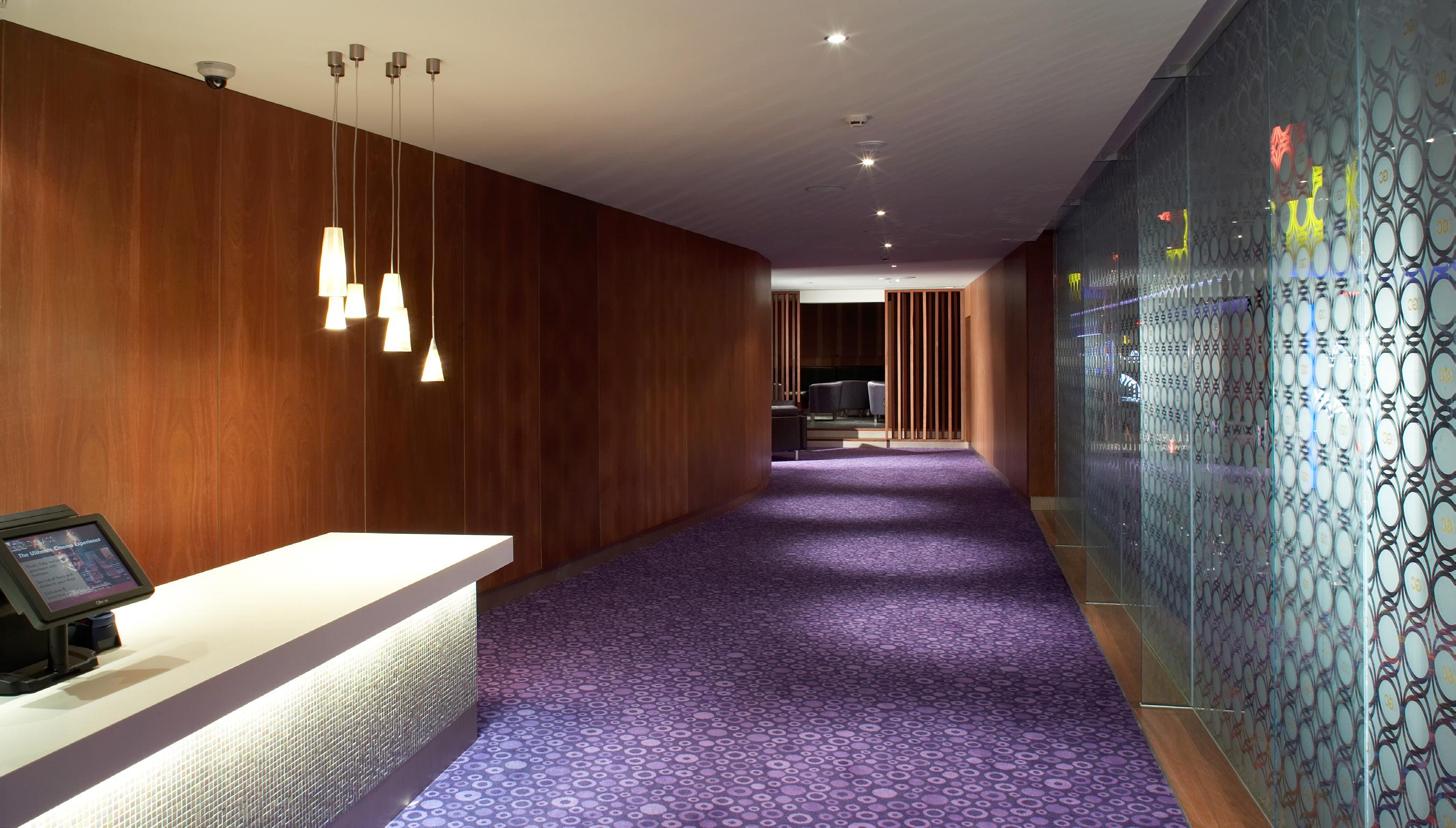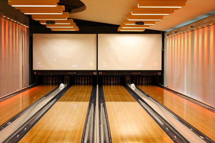 Acoustic materials and detailing were specifically chosen to control sound transmission to the cinema complex above and to the slab below, to heighten the experience of the ‘strike’ at one end of the lanes and to absorb and quieten the bar and player areas for conversation and social communication at the other end.