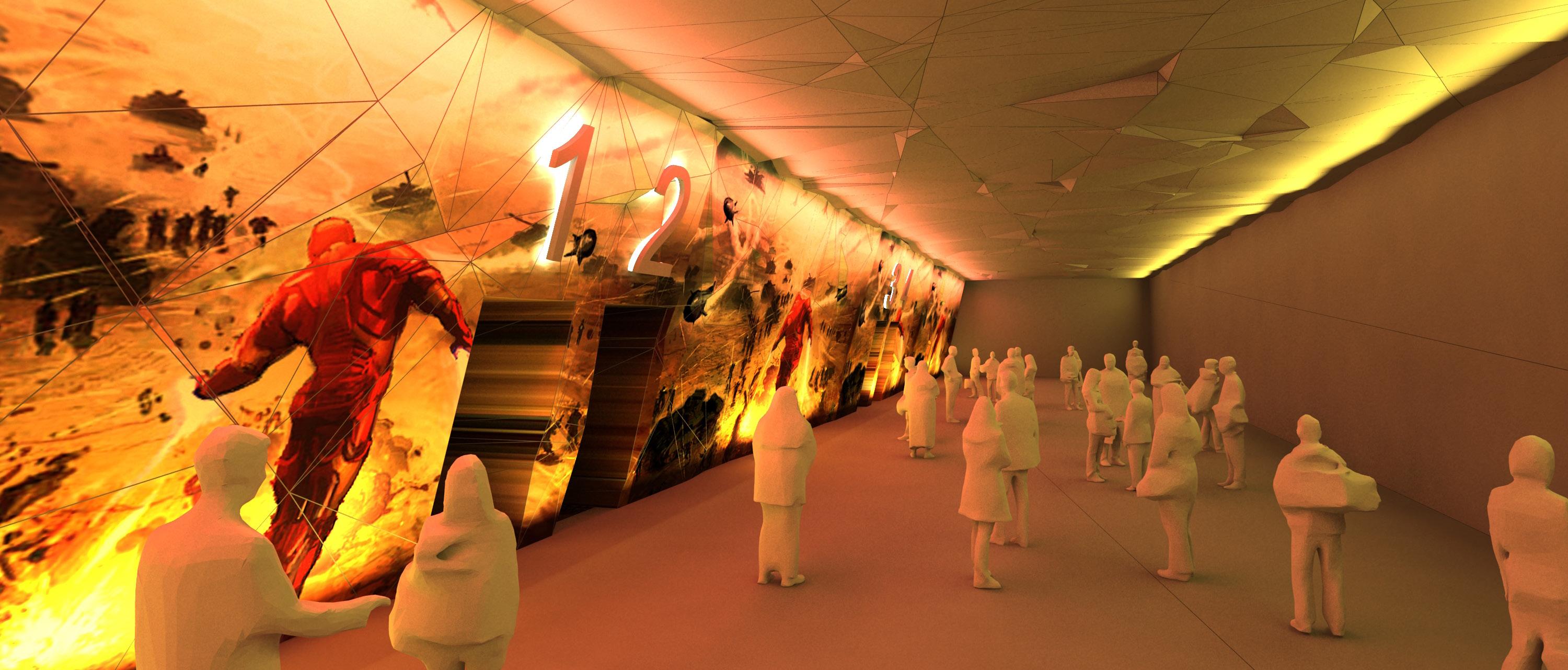 The proposal seeks to open up the raw interior by removing the cocoon and special floor, to introduce more space for visual and audio interactive experience for those not jumping, to see one’s progression from entry to centre, to watch others making the jump, their reactions down to the most detailed. More interactive activities are proposed near the bridge outside, again for those who did not want to take the big jump, as well as outside toilet facilities to cope with the huge numbers.