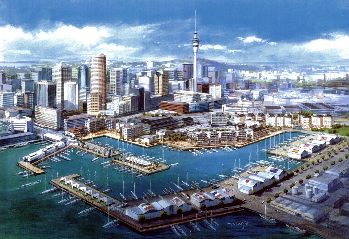 The Viaduct Harbour is a tidal man-made inlet created off Auckland’s Waitemata harbour. The reclaimed lands surrounding the Viaduct have traditionally supported robust industrial warehouses for boat manufacturing, fishing, timber and raw product storage, their activities requiring little connection to the main port and Auckland's City Centre. New Zealand Yachting hit the world stage in 1995 with New Zealand’s winning the Americas Cup, creating new demands on this rough area, which resulted in it being transformed into a foreshore playground and promenade for locals and overseas visitors. Businesses associated with the new water activities and New Zealand's high technology industries which had made possible the winning of the cup wanted to bring their office activities down to this man-made edge, to extend