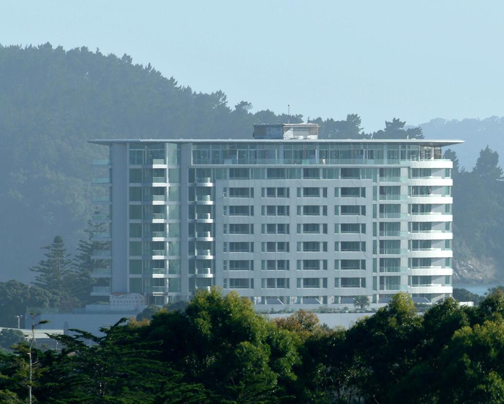 of the building is more exciting than the typical apartment development, and together with the appropriate selection of silvery and pale green materials, appropriate to its seaside location, should ensure that the Nautilus will be the most stunning apartment building yet to be built in the Auckland area. The Nautilus contains 148 apartments, for which the interior planning is equally imaginative as the building itself. An important feature is the complete opening up of the living and bedroom areas to the decks and hence the sea, to take full advantage of this unique location. The building caters fully for recreational activities, with a large outdoor ‘park’ at the top of podium level, containing a lagoon-type swimming pool and spa, gymnasium, several barbecue areas and extensive landscaping.