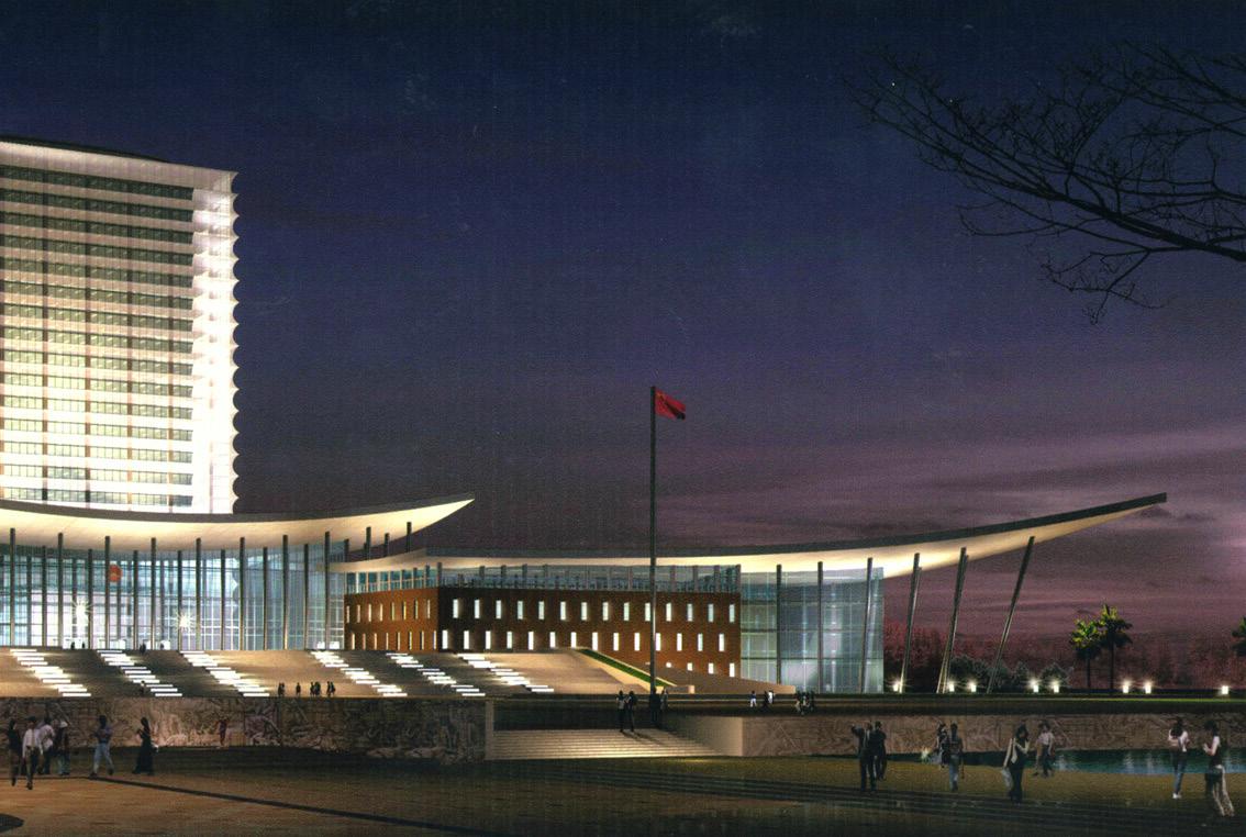 The design plays on the local geography and culture, and reflects the new open face of government and local administration in China. Features of the design include the