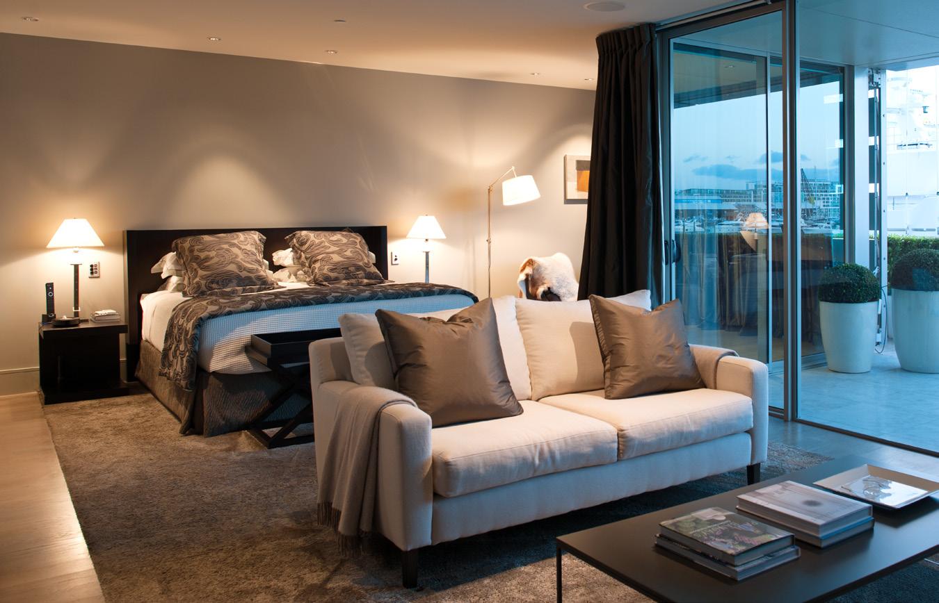 This apartment opens up to the North aspect and to the client’s super yacht berthed next to the lounge and entertaining deck area. Our design has attempted to open out to the views of Auckland viaduct harbour, yet still provides privacy with its focal point of Auckland’s Harbour.