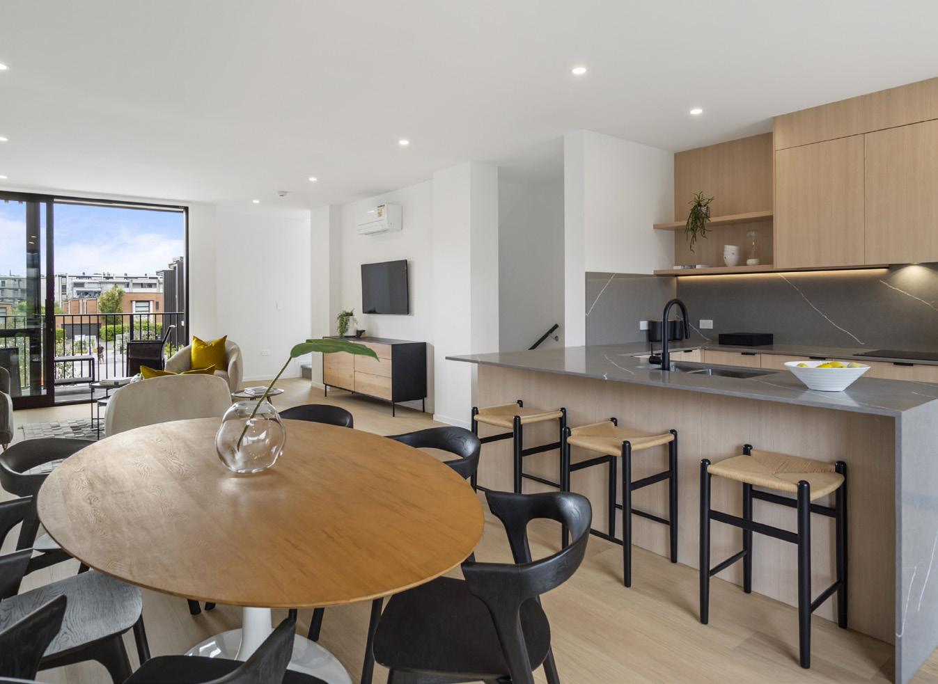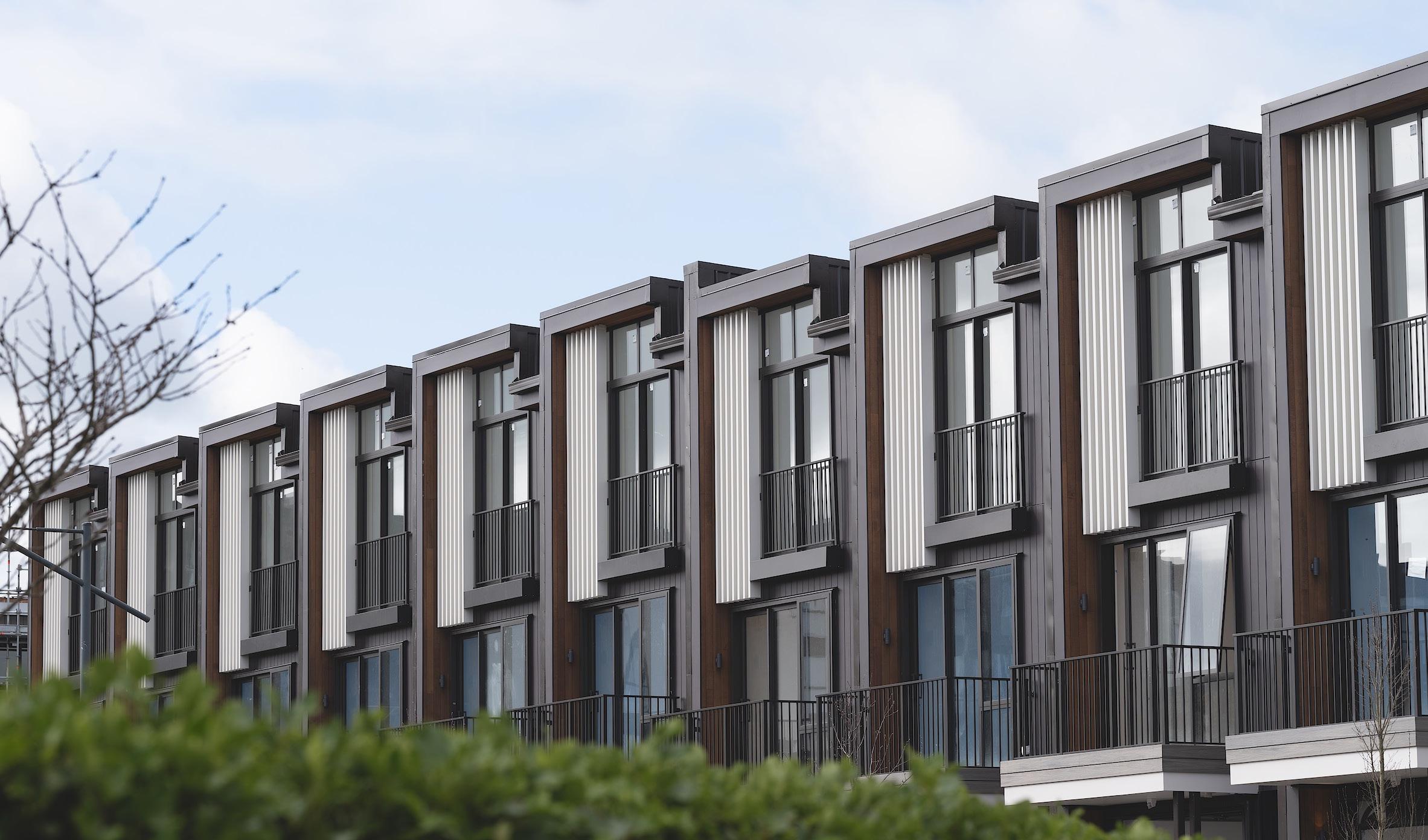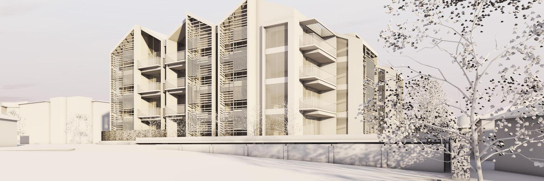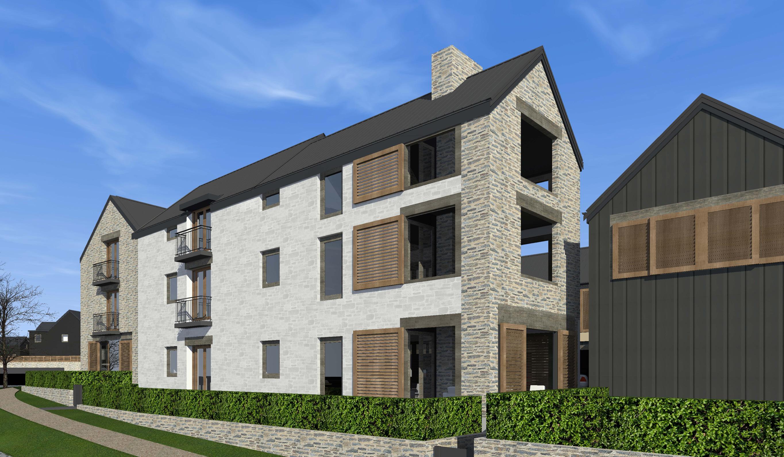 For economy of construction great attention was made for repitition of details and builibility, especially for terrace houses. The Council urban review requested the main corner of the site to be 4 levels, so a small apartment complex was designed to home 9 apartments and create a strong urban corner element in the Stonefields landscape.