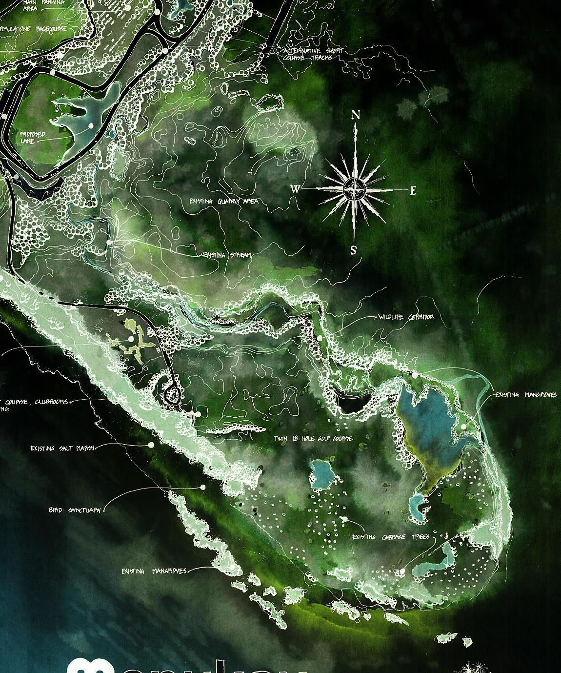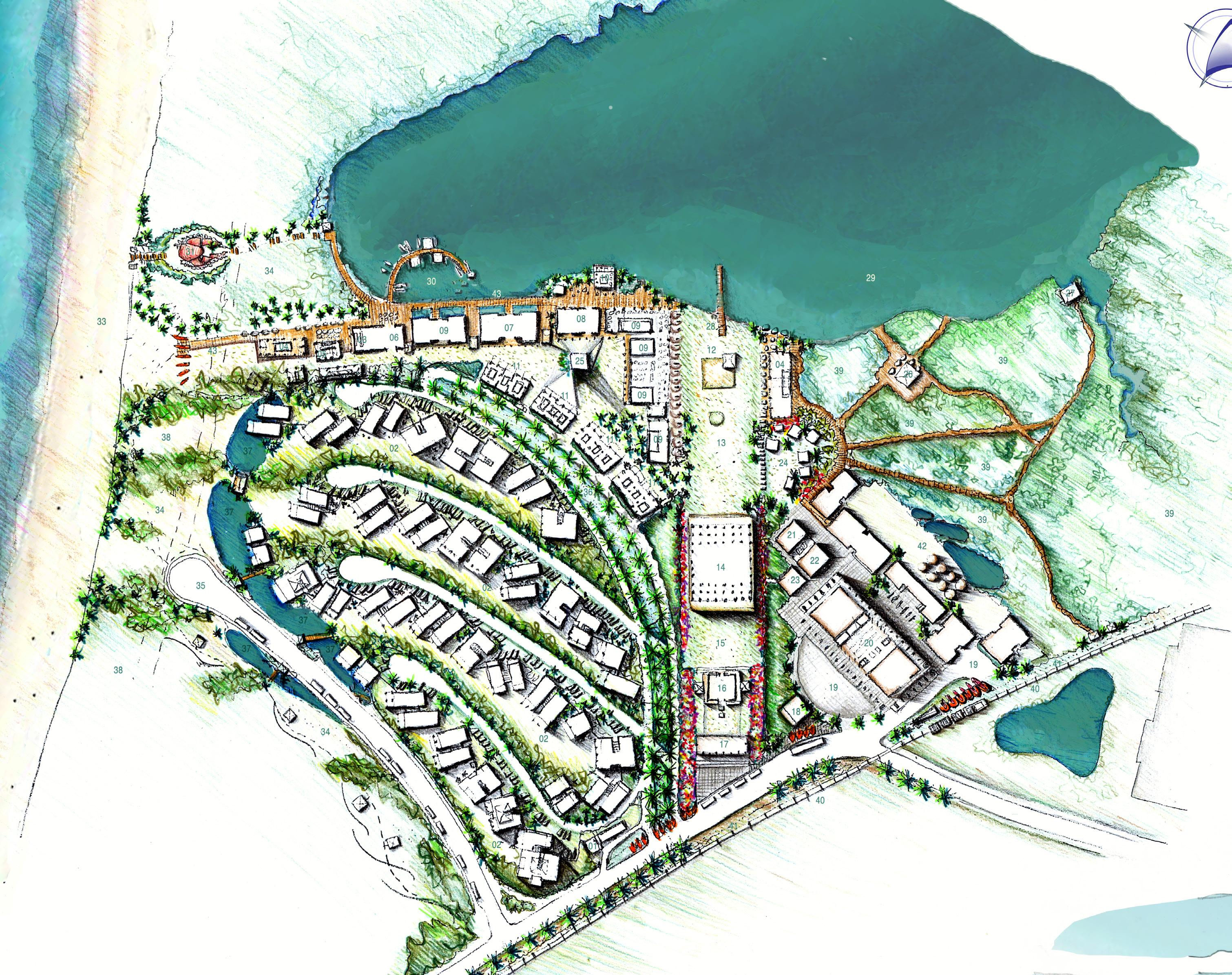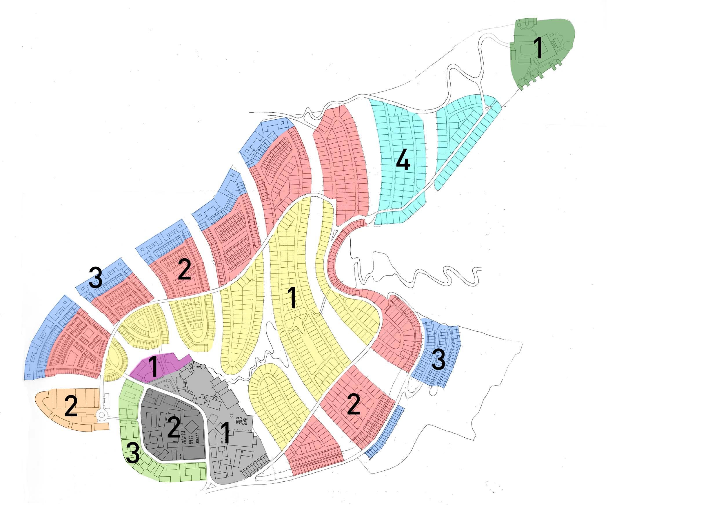 The master plan encompasses a large central park as a focus where developments will eventually align.