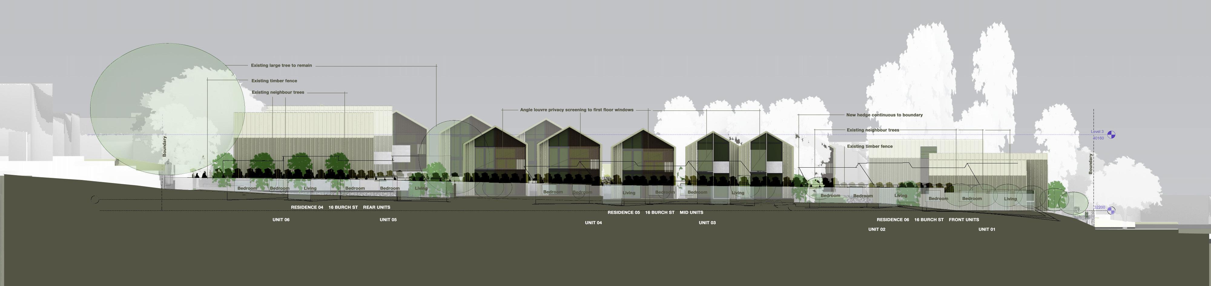 The developed residence typology comprises a simple readable street facing gable form with open glazed