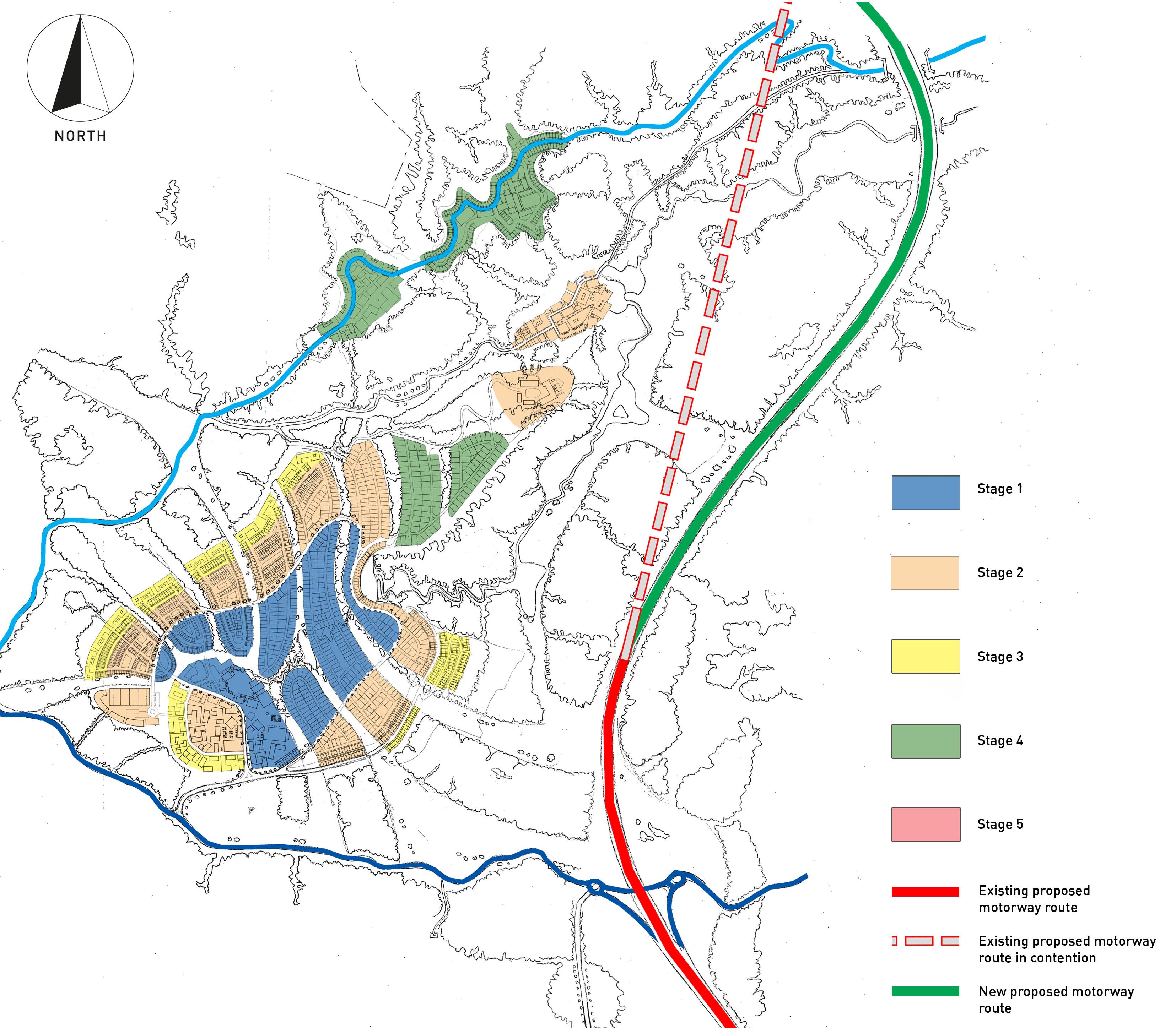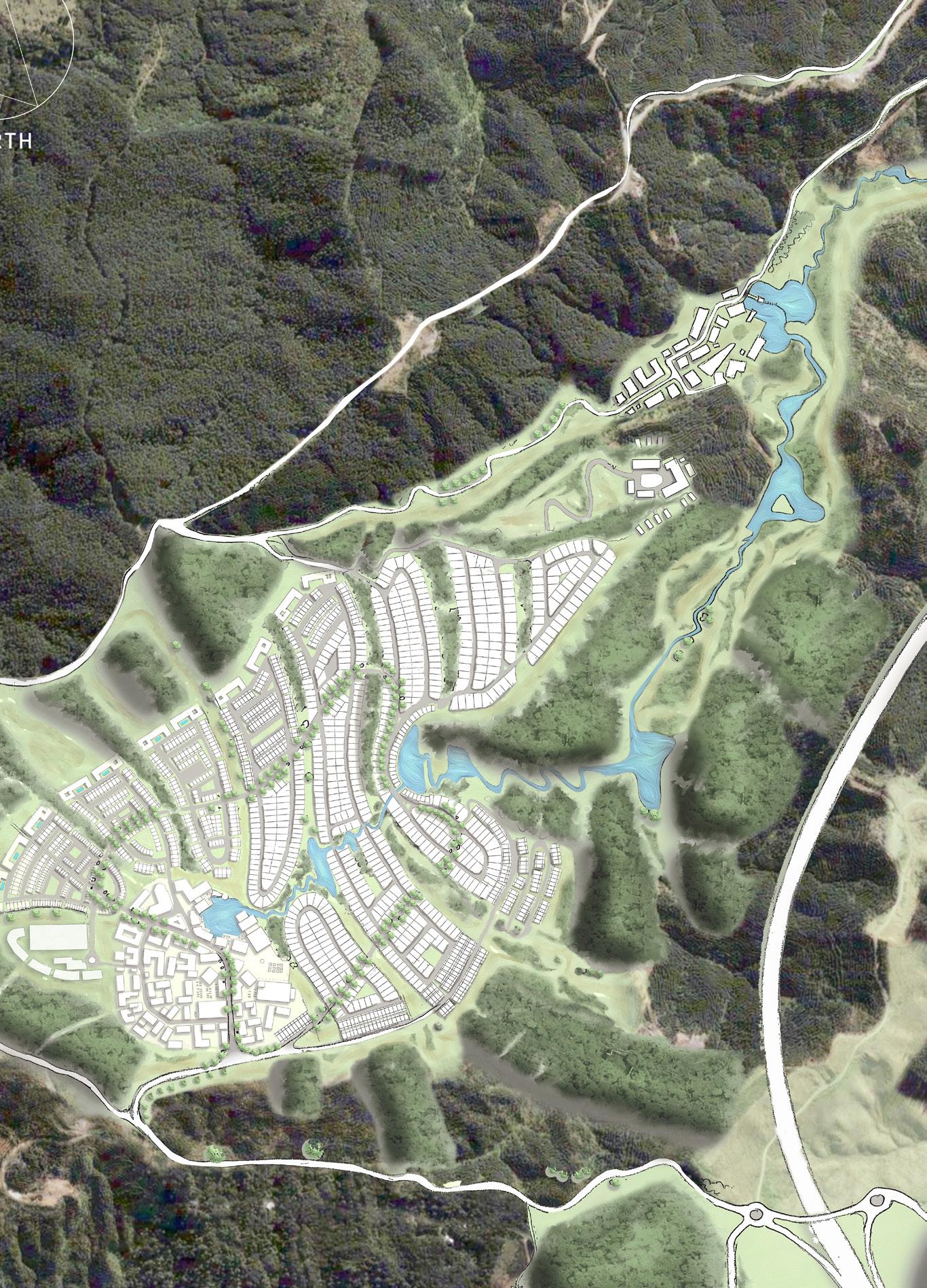 Walker Urban design and landscapes undertook a report, in conjunction with other consultants, into the feasibility of creating a new town on a privately owned property . This was seen as an opportunity to utilise existing poor grade land to provide an eco friendly response to Auckland’s expansion needs with good links thanks to the proposed northern motorway. Our concept created one larger town along with a series of smaller villages and an eco focussed university. These were to be nestled within an extensive newly created forest reserve set up in three zones for the locals and visitors to make use of. These zones were Living and recreation, Education and research as well as ecological tourism.