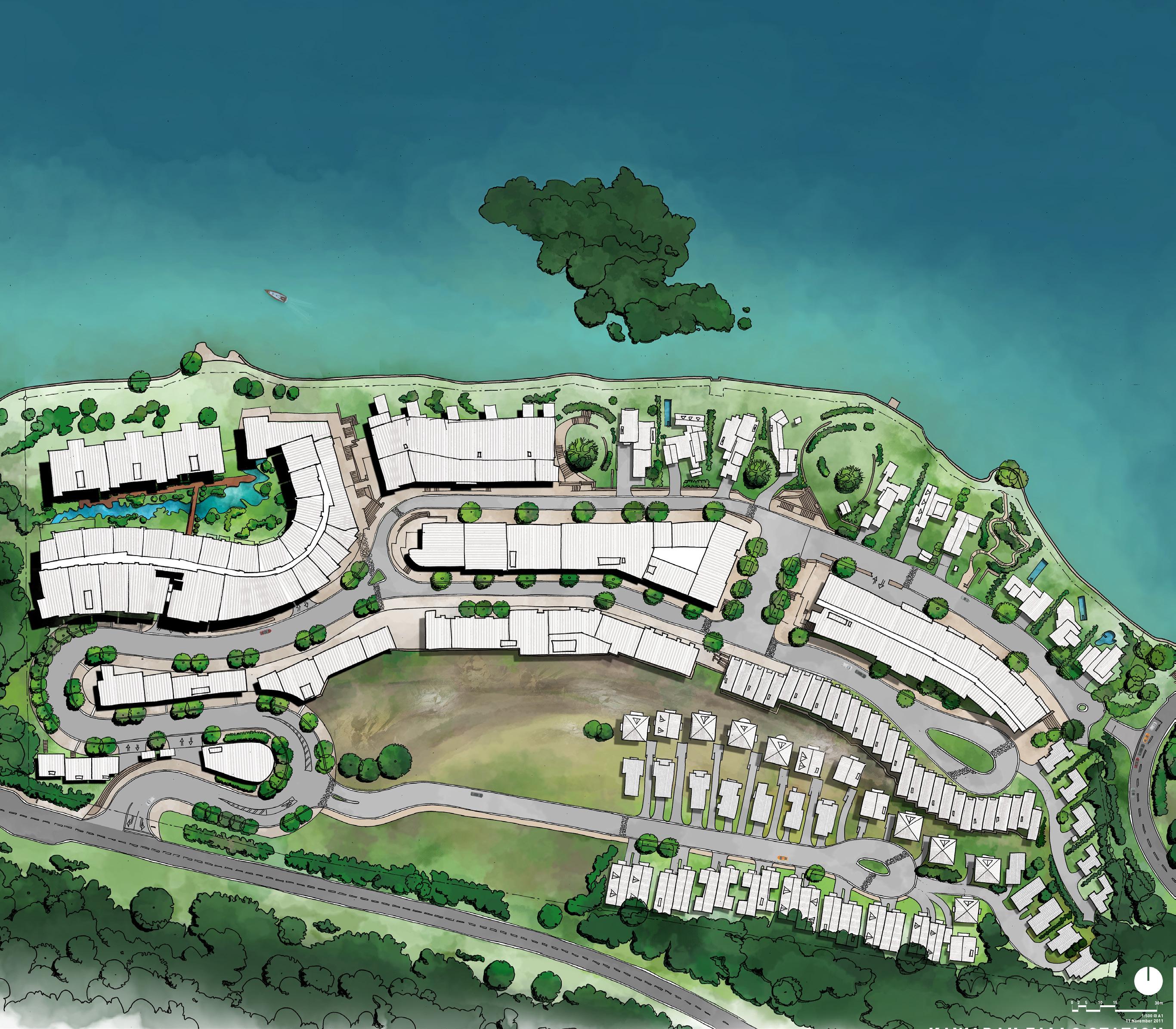 Our vision highlights and makes the most of the unique aspects of the location, such as healthy mineral water, natural hot springs, clean seaside environment etc. The master plan has several elements that other towns in the area don’t have, small public square giving the town a true centre, retail close to the seaside and native bush. A deliberate strong emphasis on health and wellbeing making this the capital of health and wellbeing for the North Island.