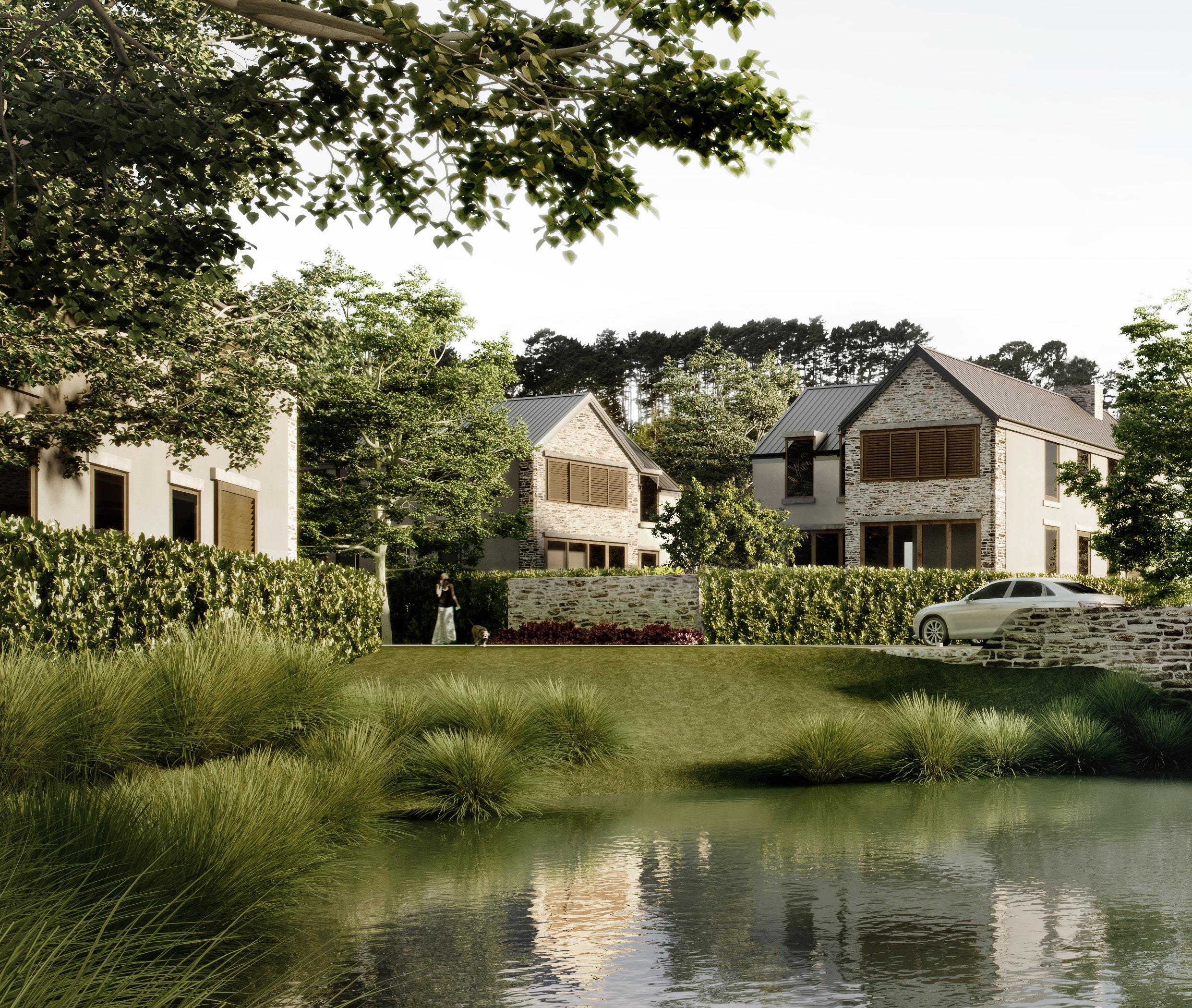 Whitford Village Green is a new type of residential subdivision in New Zealand. Architects have always like the idea of creating a village where they can consider the whole environment. Walkers were originally approached by the client after a visit to our award winning project in Wairakei. The village concept was to be based of this design, but on a much grander scale. Like Wairakei Lodge where a courtyard is at the heart, Whitford Village has a large village green”a public park” we increased the density of dwellings around this park, to include a range of two level terrace houses and a few 3 level apartment buildings, each wrapping around a small entry court.