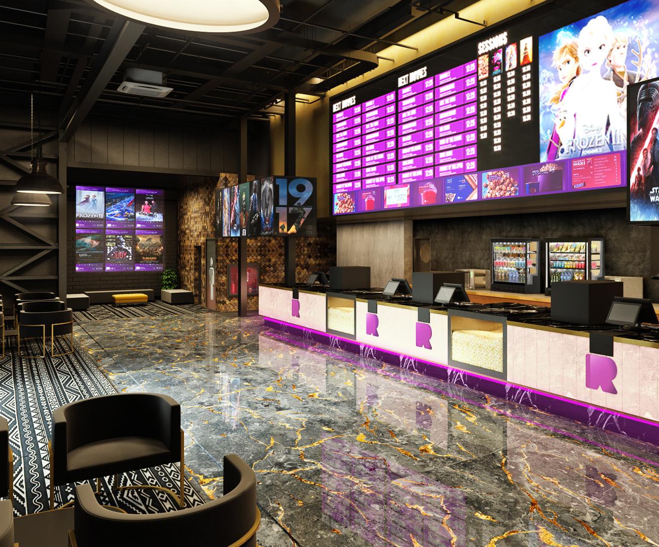Town square Dubai is a small cinema complex with very low budget into a difficult site, our concept needed to follow the overall Reel Cinema design intent that we had created, but due to the very low budget we introduced a slightly more industrial feel, thus allowing the expressed services to be part of the architecture.