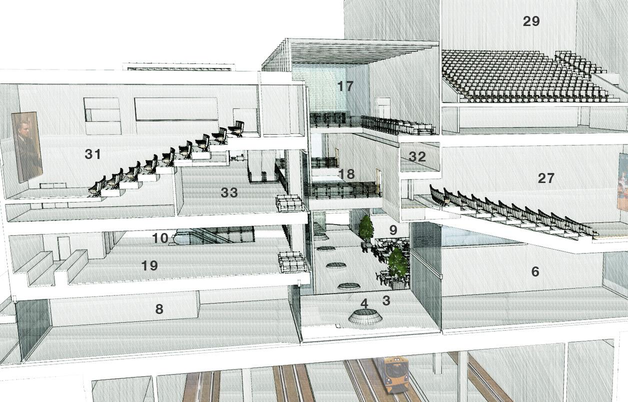 Walkers have a long history of designing buildings of high public attendance. Cinemas are one such type of building that demands careful design to help control the pedestrian movement to ensure efficiency of the space. This building which is planned to be built in 2020, not only is in public thoroughfare but is on top of existing rail infrastructure.