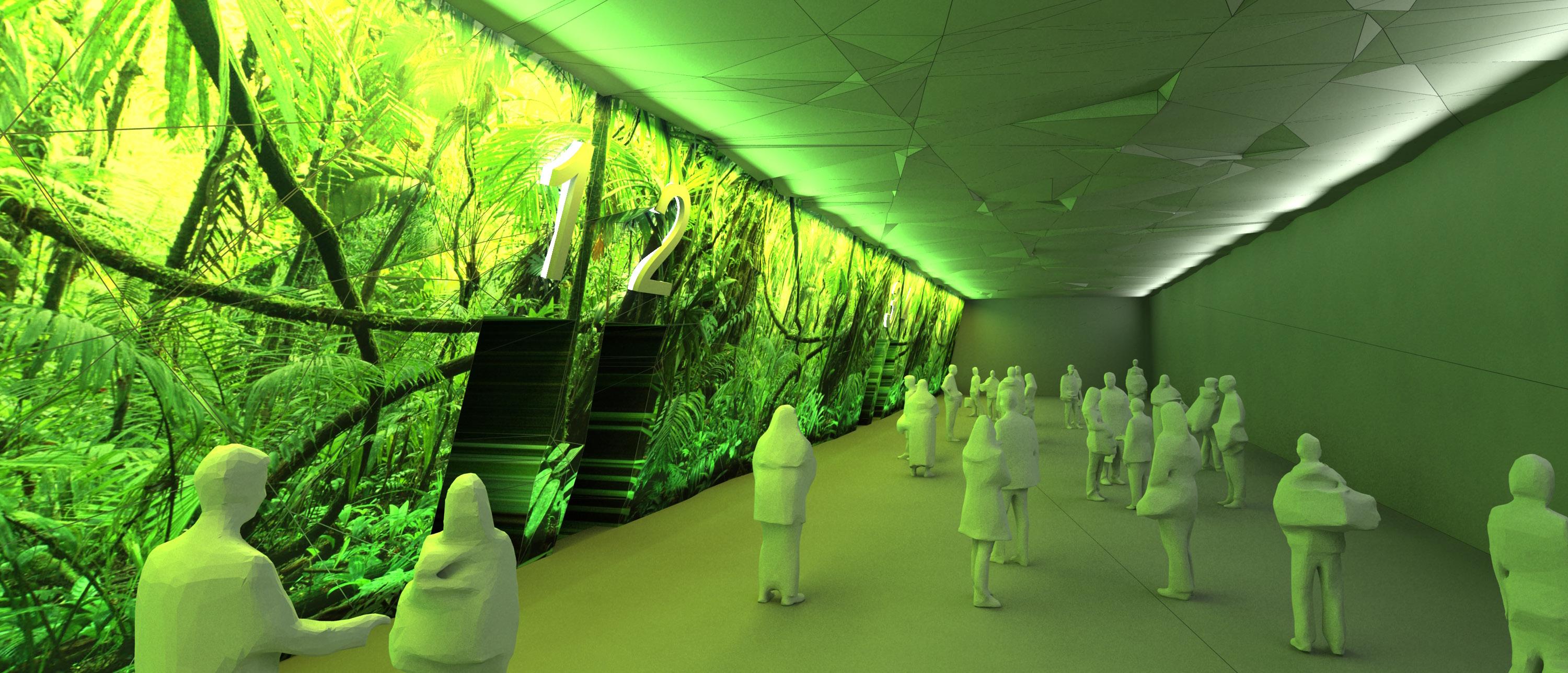 Considerable hi tech visual prompts were introduced into the foyer, some interacting with the passer by patrons.