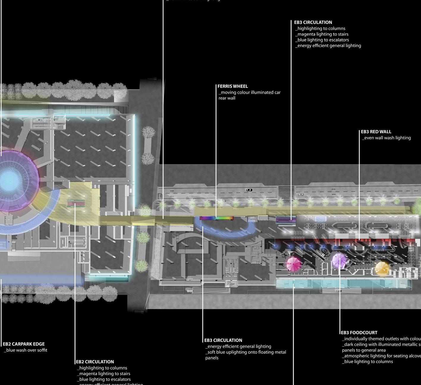 and new. Most of the activities housed within the complex such as the Cinemas, Planet Hollywood and Imax Cinema are inward looking. The patrons that visit the entertainment centre enter a ‘different world’ everything is designed to reinforce this. In short, to keep you entertained by stimulating the senses as well as offering enough variety that they can experience something new each time they visit.