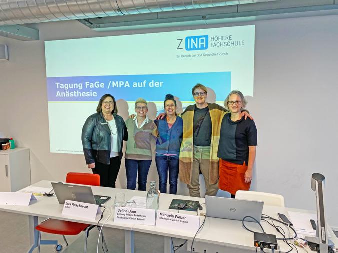 Le 9 janvier 2023, une conférence passionnante a eu lieu au centre de formation Z-INA à Zurich sur le thème «ASSC et assistant-e médicale en anesthésie, une chance ou un défi». Susanne Schuhe, directrice du centre de formation Z-INA et Ines Rossknecht, responsable de la filière EPD ES soins d'anesthésie au Z-INA et membre de la commission FSIA-education, ont organisé cette manifestation. Lors de cette réunion, les participante-s ont pu échanger leurs expériences, clarifier quelques points et éliminer les craintes existantes. Pour ma part, j’ai exposé la situation de départ et la stratégie de la SIGA-FSIA. En tant que SIGA-FSIA, notre objectif principal est de continuer à garantir la sécurité des patient-e-s et la qualité des soins dans le domaine de l'anesthésie, malgré les pressions économiques et les difficultés de recrutement. Les «recommandations pour les ASSC et les assistant-e-s médicales en anesthésie», publiées en collaboration avec la SSAPM, visent à éviter que ces professionnels ne dépassent leurs compétences dans la pratique quotidienne. En collabo-