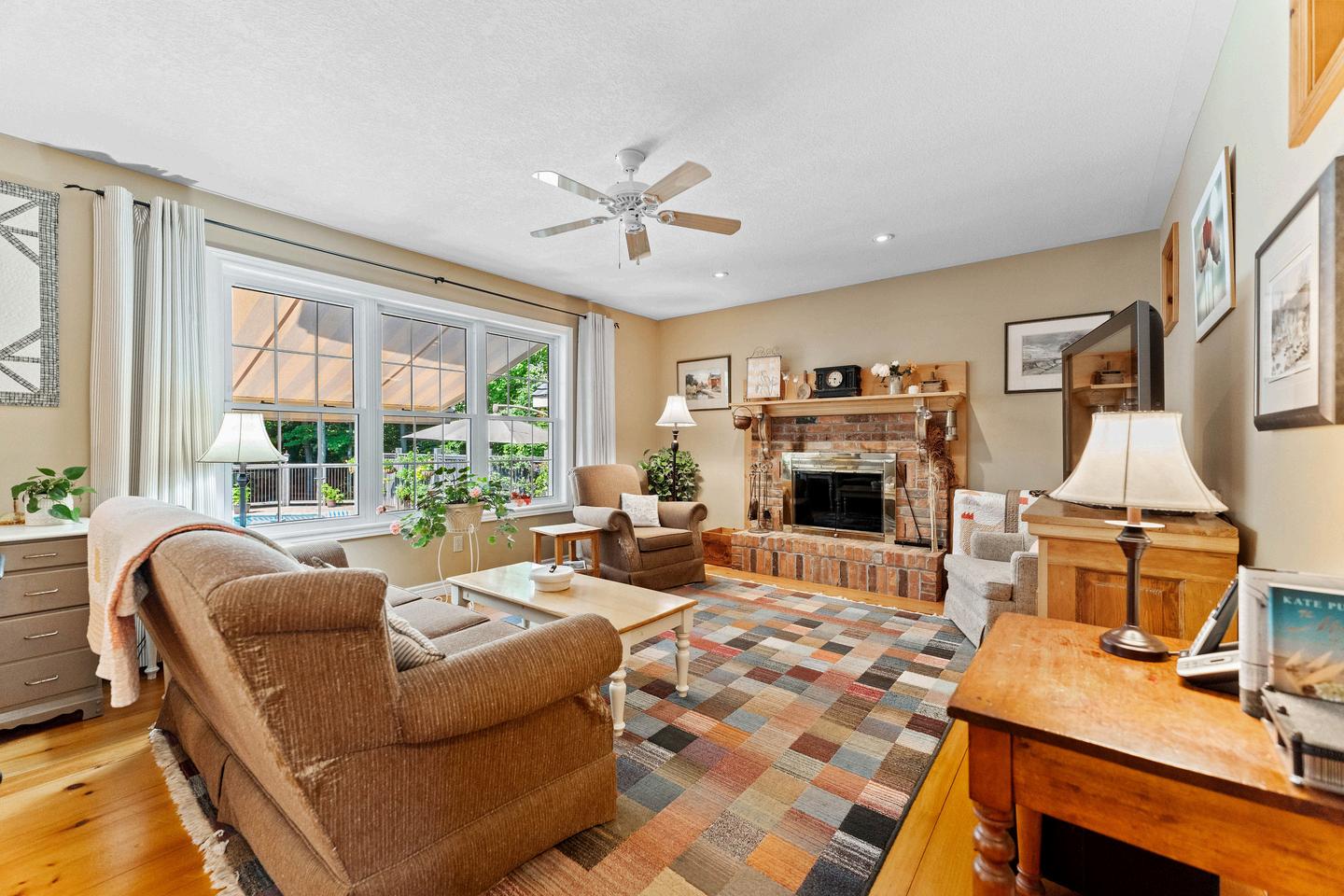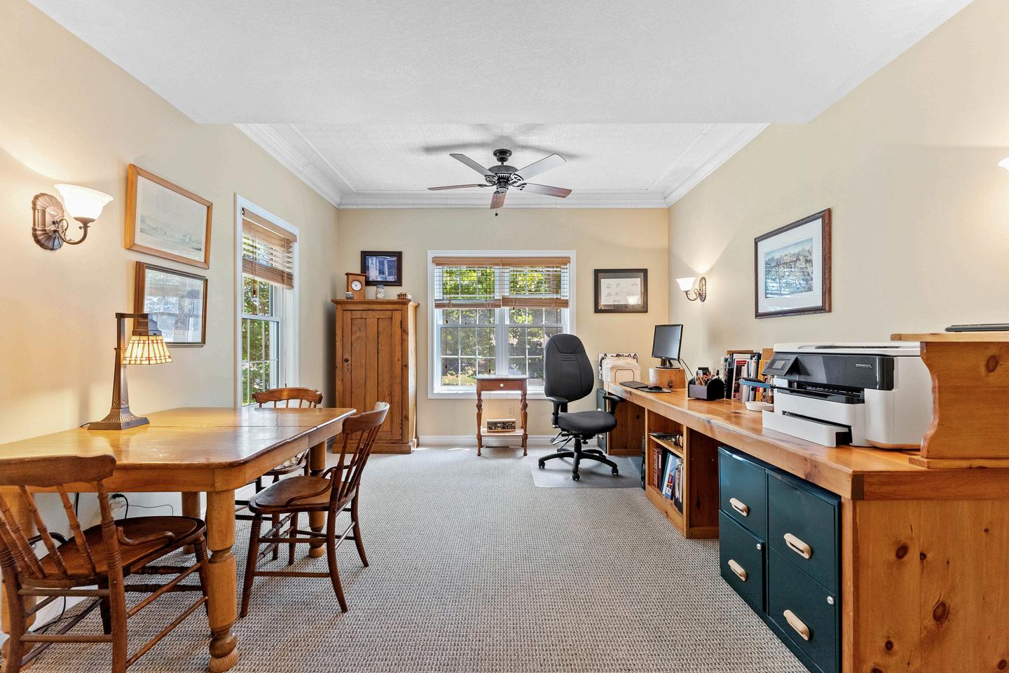 Cozy up by the crackling wood-burning fireplace in the living room, a haven of warmth and relaxation. A private home office and convenient 2-piece bathroom on the main floor add practicality to luxury.