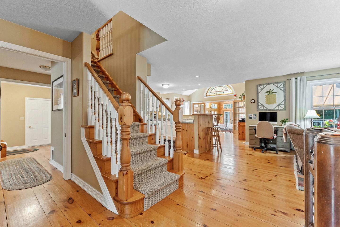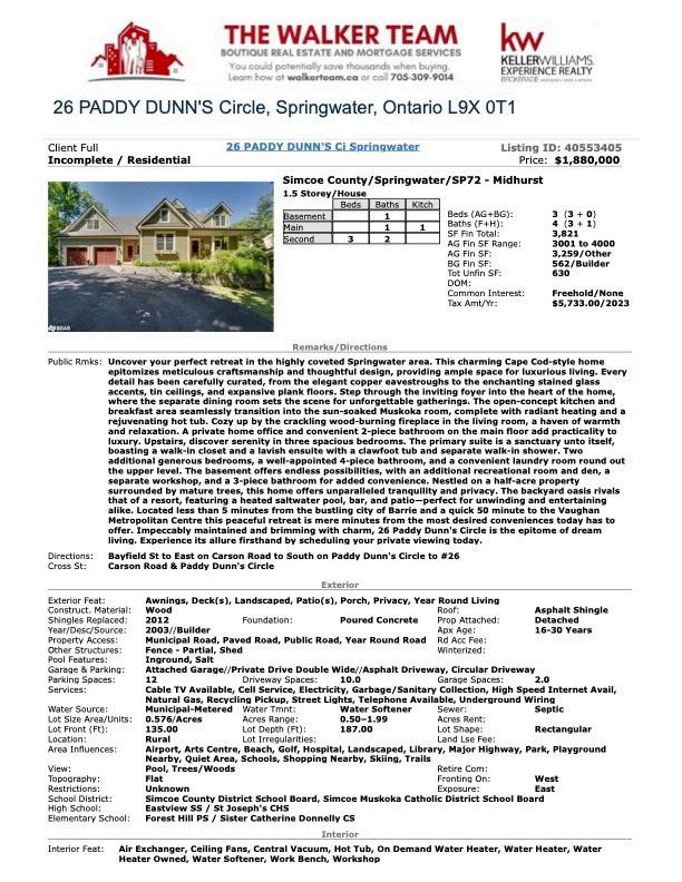 Uncover your perfect retreat in the highly coveted Springwater area. This charming Cape Cod-style home epitomizes meticulous craftsmanship and thoughtful design, providing ample space for luxurious living Every detail has been carefully curated, from the elegant copper eavestroughs to the enchanting stained glass accents, tin ceilings, and expansive plank floors