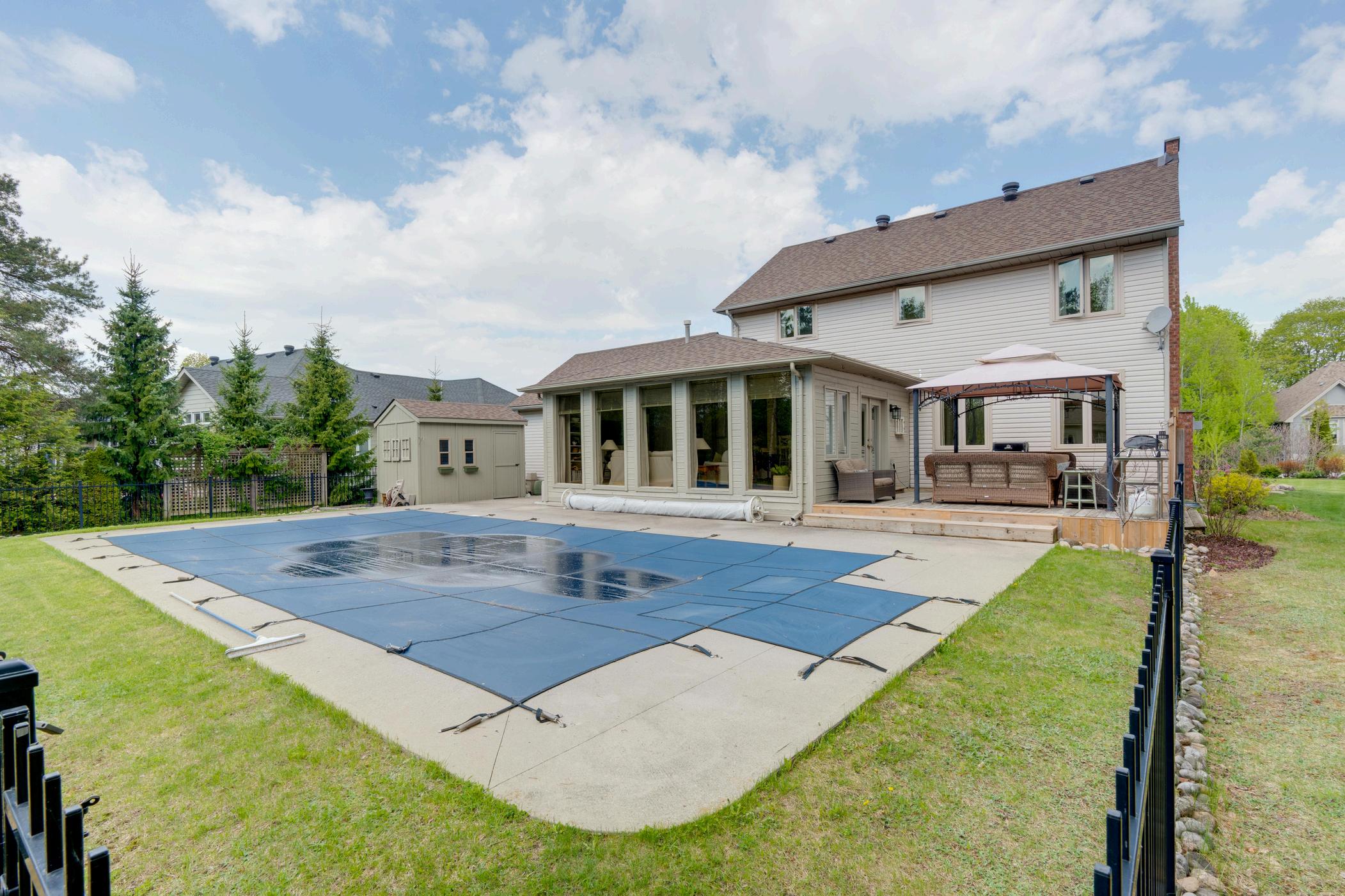 With a treelined backyard and no neighbours behind, privacy is yours to embrace, creating the ideal setting for intimate gatherings or peaceful moments of solitude An array of outdoor amenities are perfect for both relaxation and entertainment Enjoy your oasis with a heated inground pool, inviting you for a refreshing dip on warm summer days Two garden sheds offer ample storage space for all your outdoor essentials, ensuring a clutter-free environment Enjoy lazy afternoons on the front porch, while peacefully enjoying the tranquillity of the surroundings.