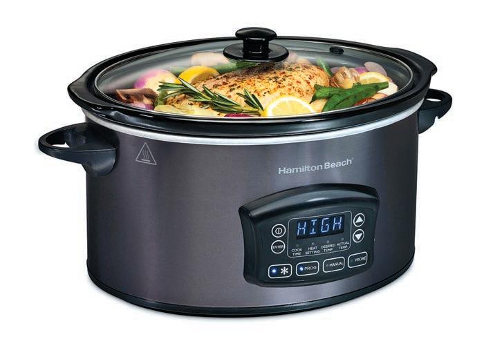 Colder days and nights call for slow-cooked comfort food. The programmable defrost slow cooker by Hamilton Beach can defrost and cook food safely without overcooking. The innovative appliance also includes flexible programming and a temperature probe to cook meat perfectly. $120. canadiantire.ca