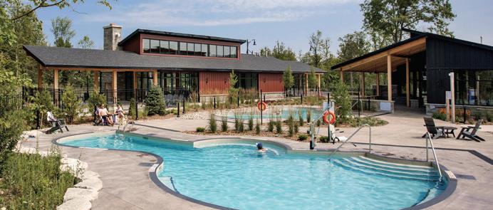 lifestyle, surrounded by the most coveted neighbours. After a day of skiing, shopping, and excitement at the famed Blue Mountain Village and Resort, it’s comforting to know you can unwind at the renowned Scandinave Spa right next door. Exclusive to Windfall residents, “The Shed” is a barn-inspired, architecturally striking, yet unpretentious gathering place at the heart of the community. It features year-round warm and hot outdoor pools, a fitness area, and more, serving as a social hub for all ages.