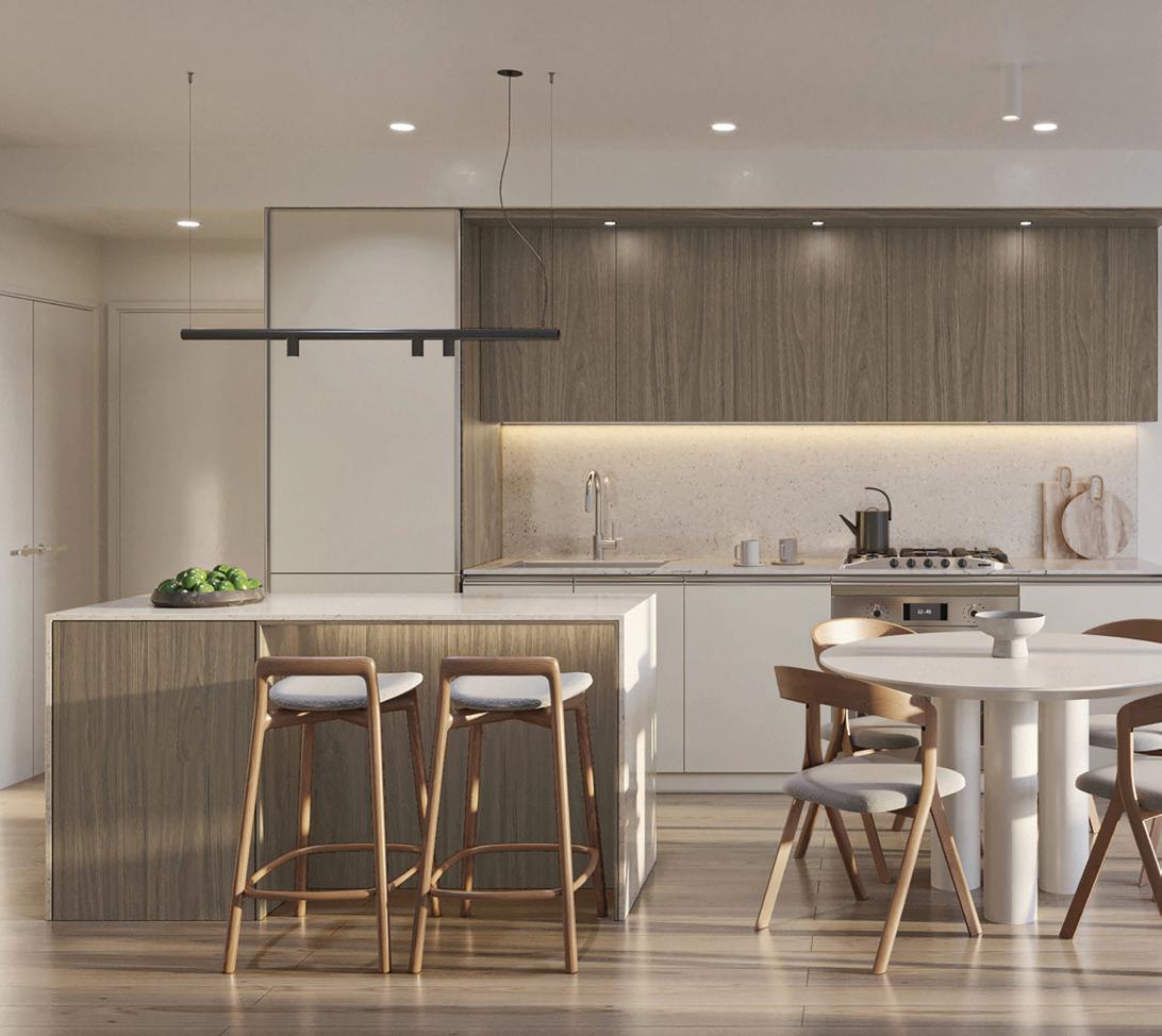 of design and architecture meticulously crafted to elevate your lifestyle. Amenities include an amenity room, designed for relaxation and entertainment, a work hub room with a dedicated meeting space equipped with a table and chairs, a printer and ample cabinetry for efficient tasks, bike wash and repair centre, and outdoor space with BBQ, fire pit, tables, gardens and a play area for children. Register today.