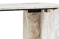 Crafted in a monolithic silhouette, this table showcases a blush and ivory veining of matte-honed Blue Coast marble.