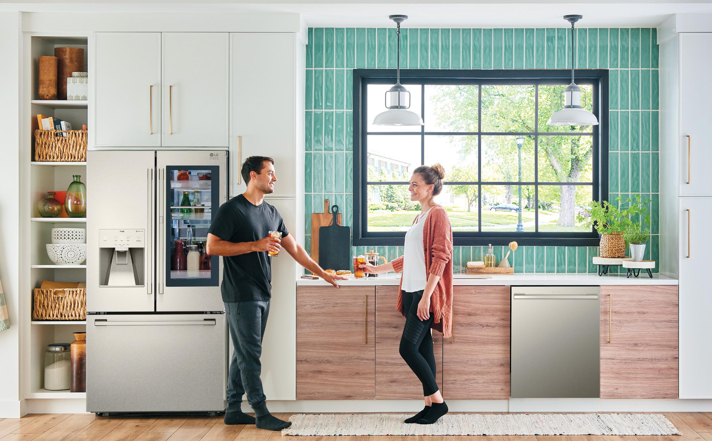 Find a range of products for the kitchen, such as a counter-depth refrigerator and side-by-side builtin refrigerator; gas, electric and induction free-standing ranges, builtin cooktops, wall ovens, wall-mount chimney hoods; and top-control dishwashers, all featuring a distinctive style palette aimed to complement contemporary kitchen designs. These smart appliances are also built with the innovative LG features consumers know and love, such as LG ProBake