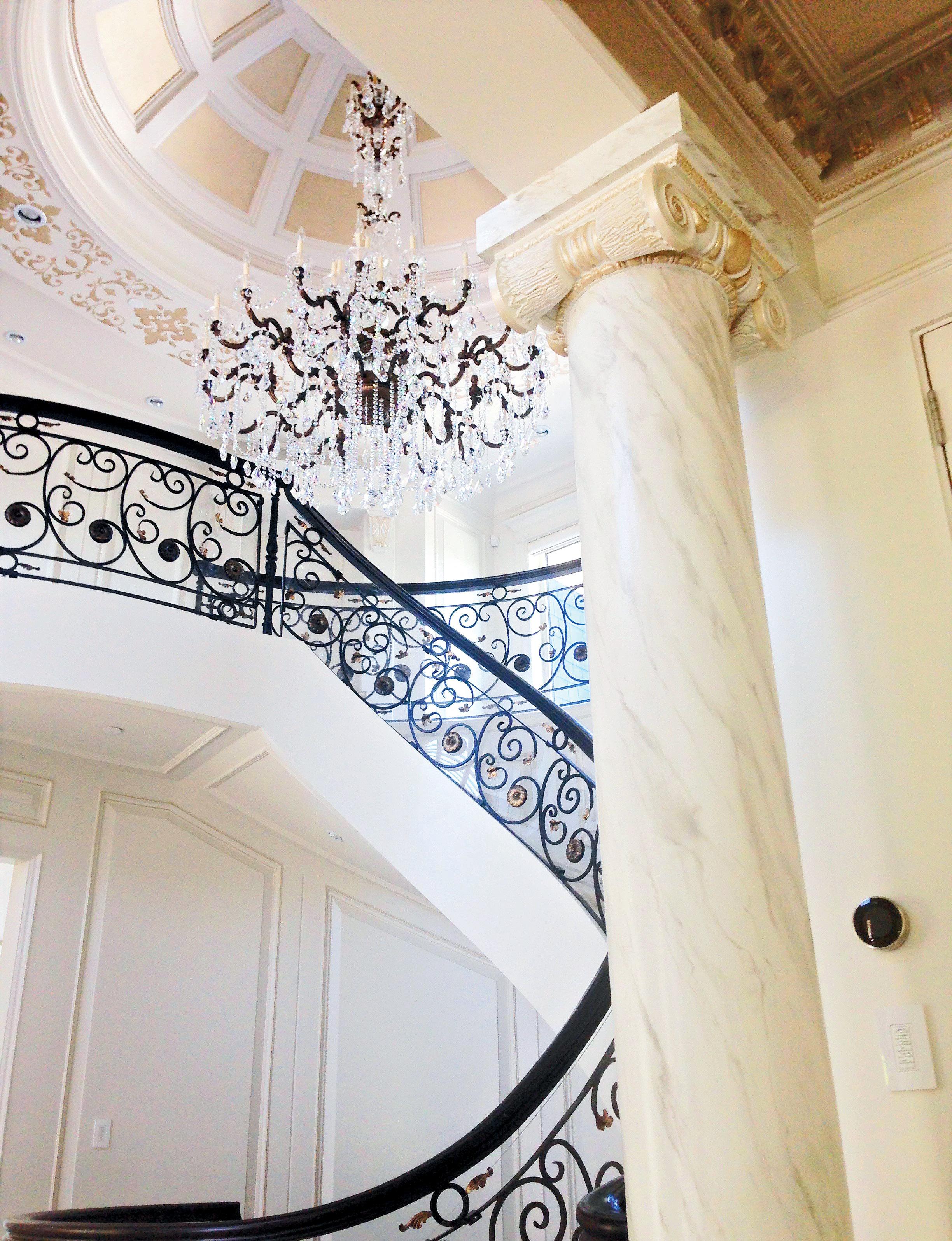 Diana Rose is the principal and creative director for Diana Rose Design. Nationally published, she is known for creating tailored interiors that enhance and complement your lifestyle. Servicing Toronto, the GTA, and Muskoka dianarose.design IG: @dianarosedesignThe grandeur of this entryway, located in Shaughnessy, Vancouver, was taken to another level with the addition of faux marble pillars, champagne gold ‘tipping’ on details, faux-finished ceilings and a custom ceiling design. The process of the work was a natural progression of seeing what a space needed next.