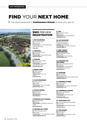FIND YOUR NEXT HOME The latest properties in Southwestern Ontario to keep your eye on