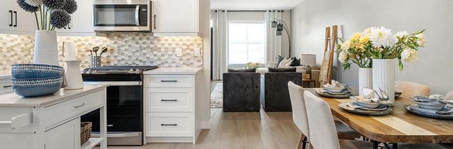Available is the Monarch model at 1,209 square-feet with three beds and two-and-a-half baths. It is stylishly functional with an open concept main floor that feels spacious and is perfect for entertaining. “Our kitchen certainly wins over a lot of buyers who can’t believe the spaciousness it offers. It’s great for entertaining for for quick meals with the family.”