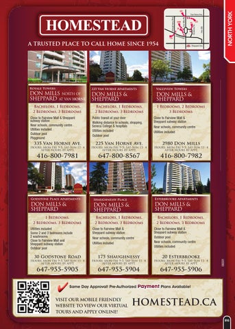 DON MILLS NORTH OF SHEPPARD AT VAN HORNE Bachelors, 1 Bedrooms, 2 Bedrooms, 3 Bedrooms Close to Fairview Mall & Sheppard subway station Near schools, community centre Utilities included Outdoor pool Playground