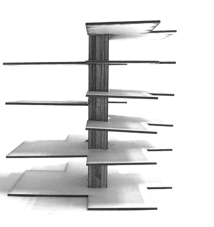 ARCH 5230 | Our team aimed to design a roof that not only serves as a functional shelter but also becomes the defining element of a contemplative space. Using a dynamic pulley operated system integrated into the roof structure, the shelves collapse into the structure when not in use, facilitating flexible programming.