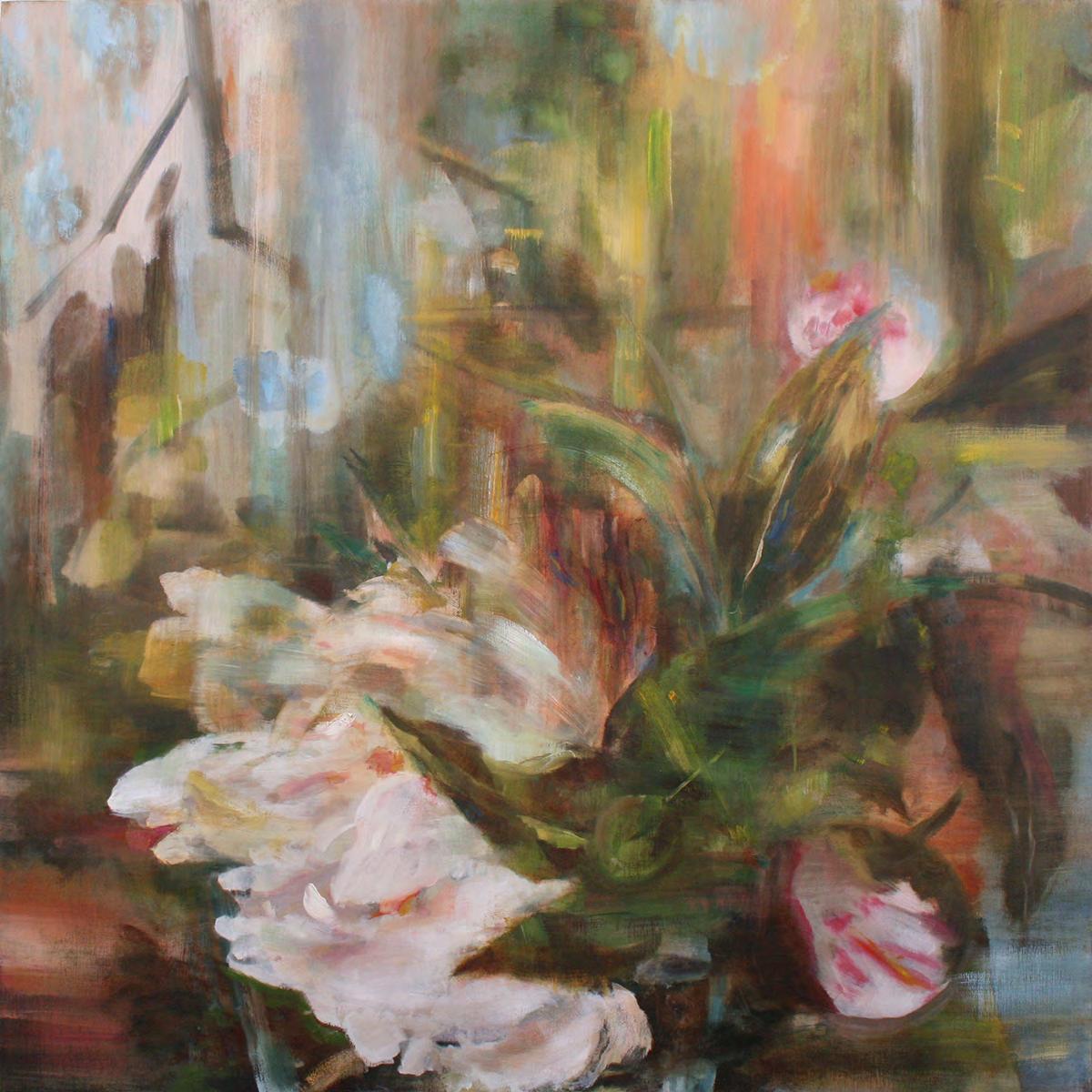 Several paintings are centred on the exuberance of blossoms, their ephemeral beauty, and their eventual demise. Each flower is a vehicle of change, of what we experience and observe in our own lives. Certain passages are descriptive while others are abstract. Lustre is surrounded by tension and interference. Through the microcosm of a single bloom or an isolated tree, one sees into a larger unsettling world. Beauty is explored in the tradition of Vanitas painting, there is an awareness of the fleetingness of existence.