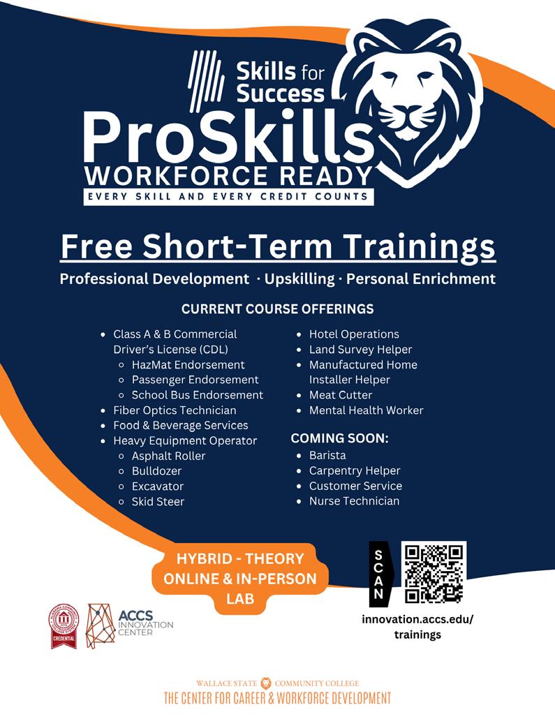 Wallace State Career Services is committed to assisting students in achieving career readiness by developing employment soft skills, coordinating apprenticeships/ internships/co-op, job placement, sharing career opportunities, and supporting students and graduates in securing employment.
