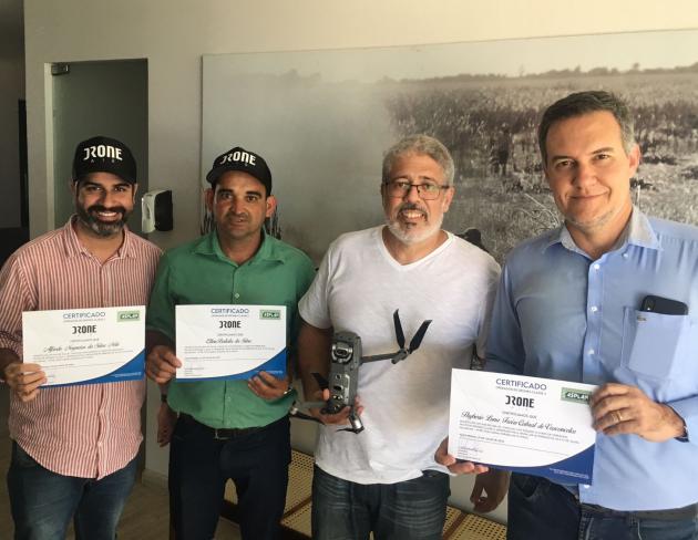 A equipe do Departamento Técnico da Asplan já atua no campo com a ajuda de um importante aliado para identificar à qualidade dos canaviais, as falhas que possam existir neles, a existência de ervas daninhas nas lavouras, entre outros detalhes Trata se de um drone, de última geração, com câmara térmica (infravermelho) Para operar o equipamento foi realizado um treinamento Participaram do curso, realizado pela empresa Drone Air, o Tecnólogo em Geoprocessamento, Thybério Luna, o Agrônomo, Alfredo Nogueira, e o Auxiliar de Topógrafo, Elton Batista. O instrutor Alessandro Silva mostrou todos os detalhes operacionais e técnicos do equipamento, com aulas teóricas e práticas.