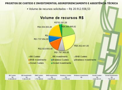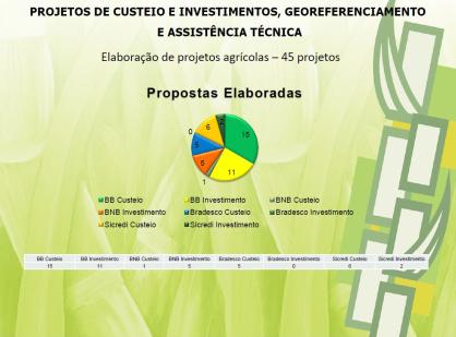 45 projetos agrícolas de custeio e investimentos que totalizaram mais de R$ 20 milhões