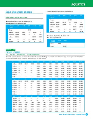 Aquatics Tuesday/Thursday – August 30 – September 15