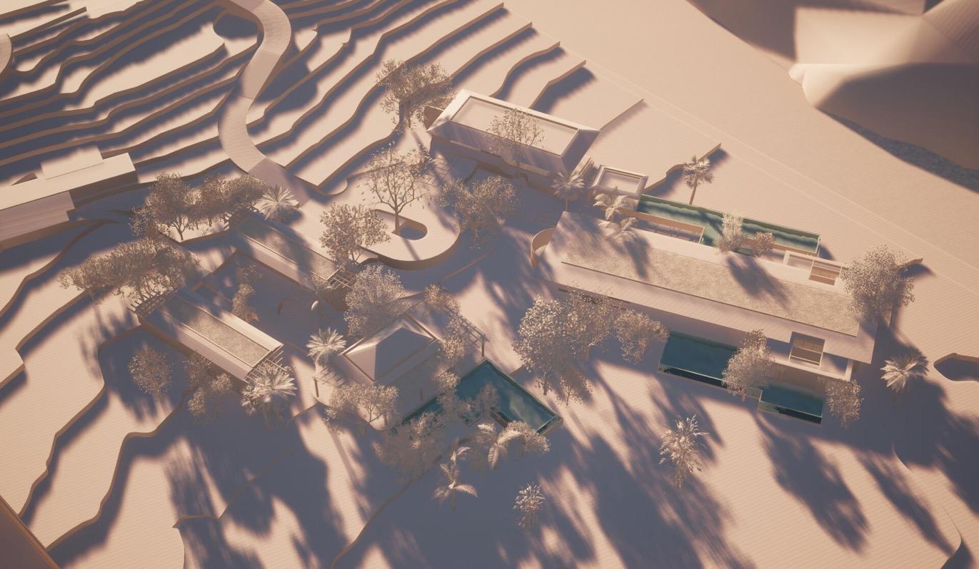 We decided to relocate the five oceanfront villas to the western side of the site to ensure privacy and exclusivity . The Beach Club was strategically positioned to have a direct connection to the public sector of the beach, allowing us to integrate the natural beauty of the forest into the complex . This design approach facilitated an eco -friendly experience by working harmoniously with the site's natural elements.