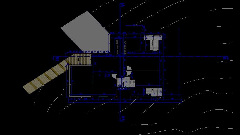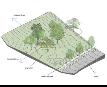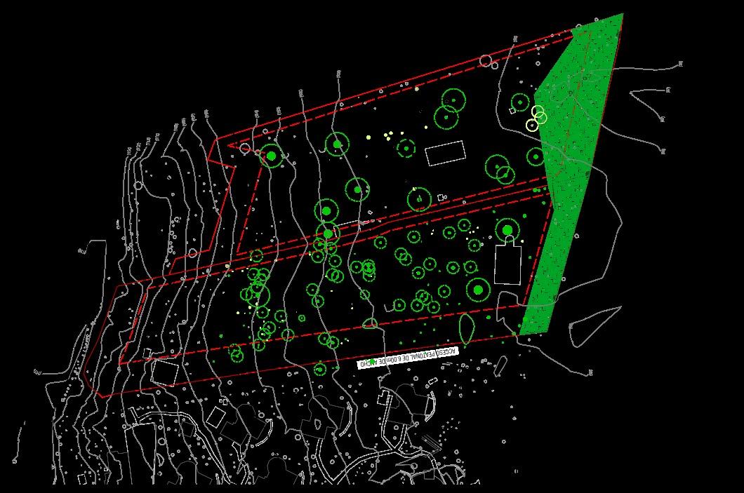 In both cases, the design lines were marked at a 45 -degree inclination, aligned with the positions of the multiple native trees in the protected forest.