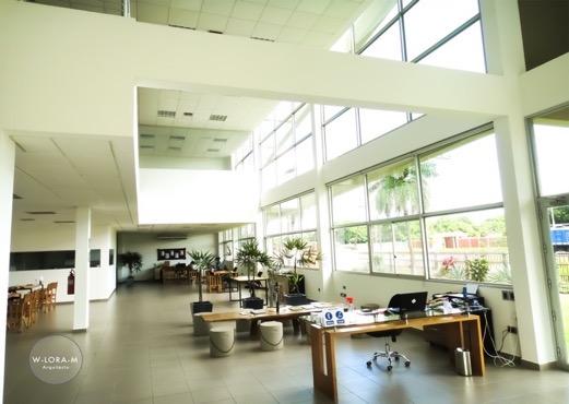 This project focuses on the design and implementation of a sustainable corporate headquarters for industrial services in the tropical Amazon region, connected to a rear warehouse . The primary premise was the optimization of natural light, ventilation and energy. The building's front facade opens on both levels to the north, allowing for consistent daylight exposure and the capture of northwest tropical summer winds. Structural pergolas and pure concrete walls on the east and west control solar radiation, providing shade while enabling natural ventilation. This design reduces the need for artificial ventilation during the summer and enhances lighting efficiency through passive bioclimatic strategies, exemplifying outstanding sustainable corporate architecture .