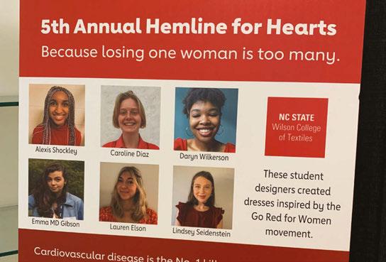 HEMLINES FOR HEARTS In February, students Caroline Diaz, Lauren Elson, Emma Gibson, Lindsey Seidenstein, Alexis Shockley, and Daryn Wilkerson from NC State's Wilson College of Textiles displayed their creations at Crabtree Valley Mall as part of Hemlines for Hearts, a service learning design competition in partnership with the American Heart Association.