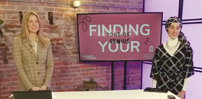 Clockwise from top left: Panelists and guests at the event; Bank of America vice president Molly DeCola; Bank of America Student leader Fatima Bell; WALTER editor Ayn-Monique Klahre; Melissa Carrier (left) and Rida Bayraktar from Innovate Carolina.