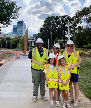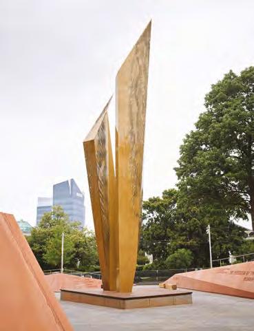 lined by cement walls the color of red clay. Inscribed in the walls are quotes about freedom from prominent Black authors, abolitionists, scholars and civil rights leaders, including James E. Shepard, Ella Baker and Maya Angelou. The passages date from the 1700s to the present day. “Often we’ve disregarded Black North Carolinians who have spoken to us about freedom. Now we can see their words and be inspired,” says Gallagher.
