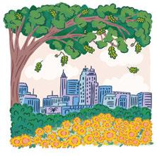 The wood was a centuries-old White oak tree on the grounds that had to come down. “It’s sort of an homage to the tree, giving it a second life,” says Moore Square director David Gill. “We wanted something that would speak to the wildlife in the park. The number carved in its trunk, 1792, represents the year the park was founded.”