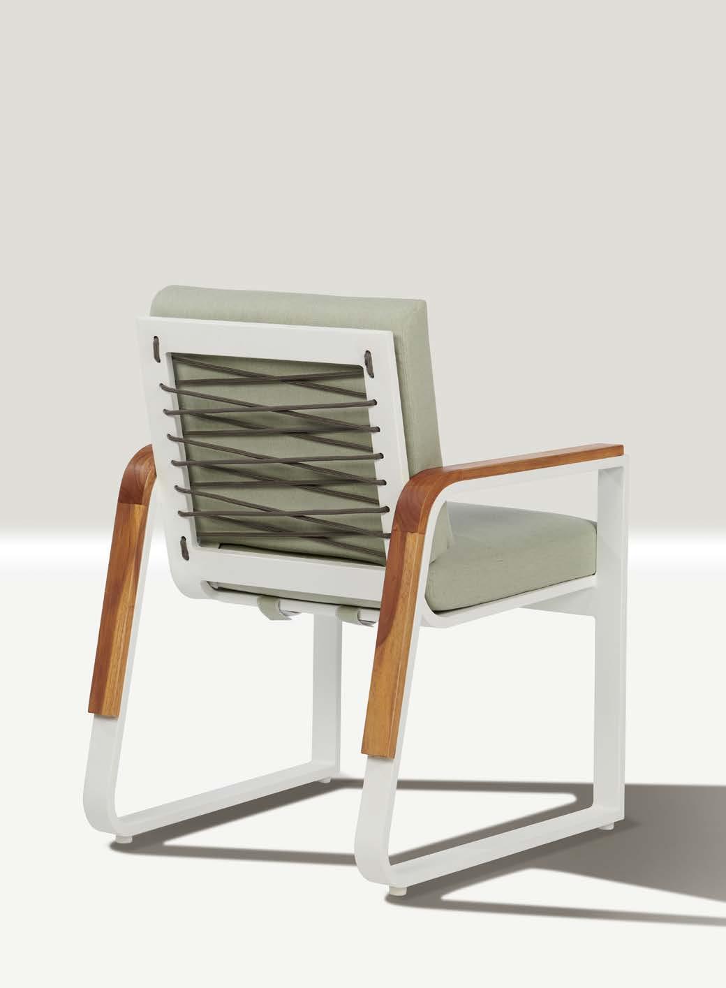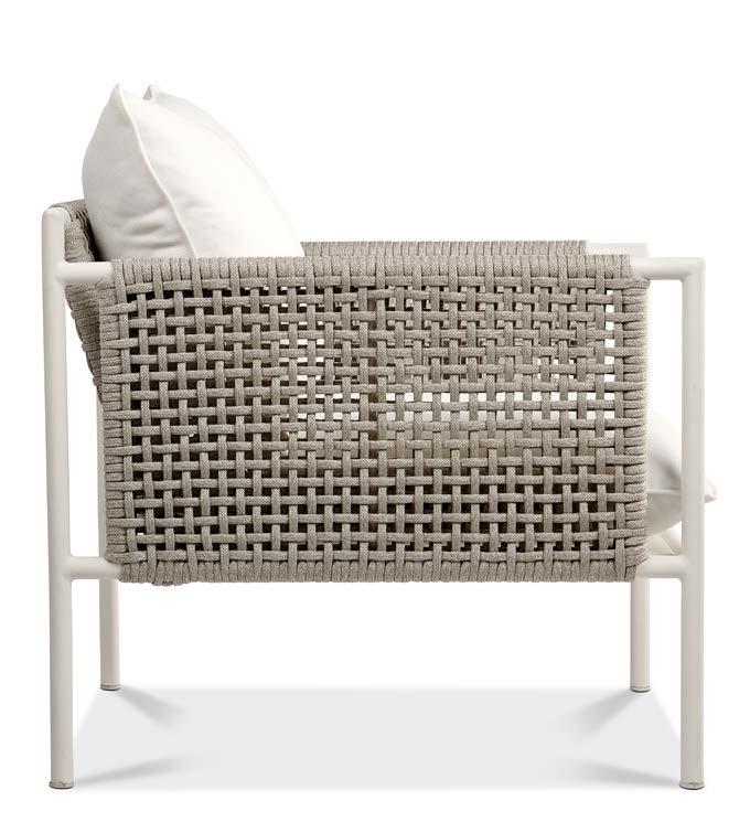 In addition to promoting comfort by conforming to the contours of the body, the rope backrests also create a unique and striking accent to set your space apart. The repeated lines of the woven pattern create a sense of rhythm and movement that e ortlessly draws attention, while the combination of materials and textures achieve an inviting tactile richness..