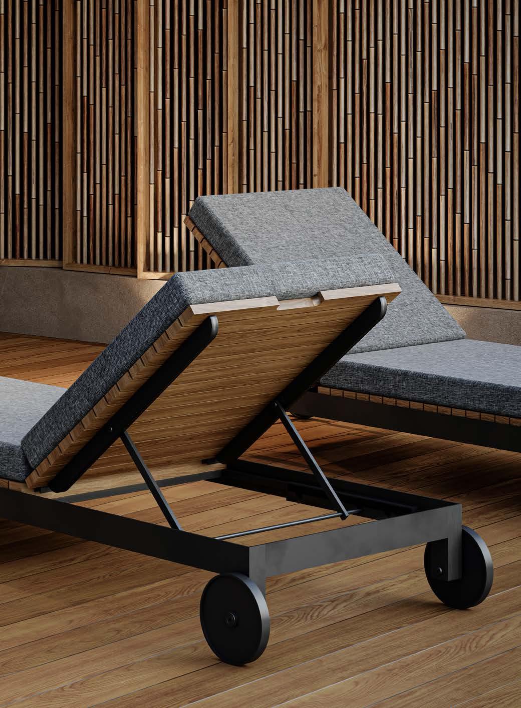 Framed in finely carved solid teak, the Laurel Collection by Je rey Bernett is a stylish option for both indoor and outdoor environments. Featuring simpli ed lines that ow along muted curves, the collection appeals to the iconic silhouettes of the Danish Modern movement. This midcentury in uence imbues the collection with an inviting warmth, while also delivering outstanding durability.